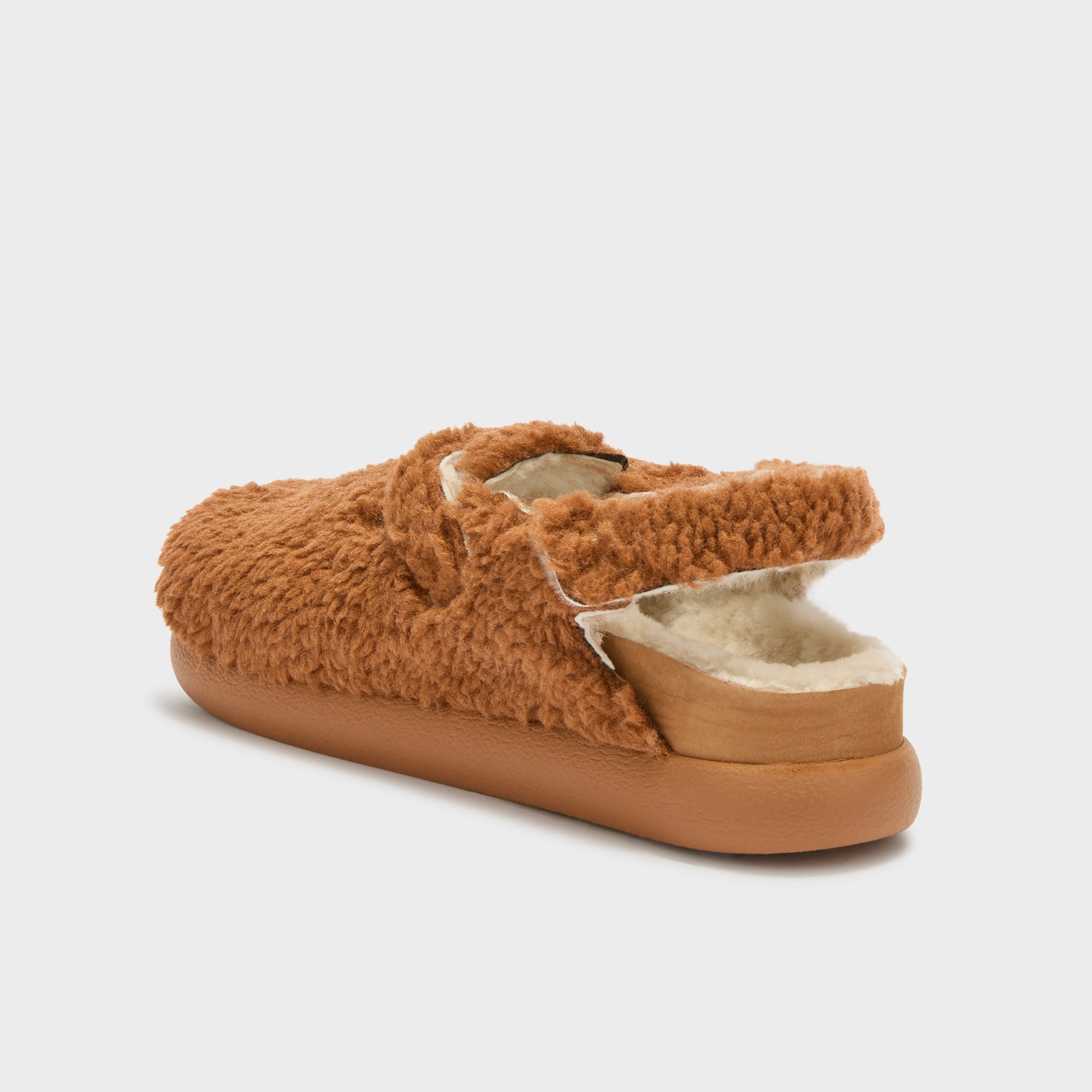 Bleiben Sie stilvoll und gemütlich mit diesen Pantoletten aus Lammfellimitat mit einer trendigen, klobigen Sohle. Sie sind auf ganztägigen Komfort ausgelegt und verfügen über eine verstellbare Schnalle und einen Rückengurt für einen sicheren Sitz.