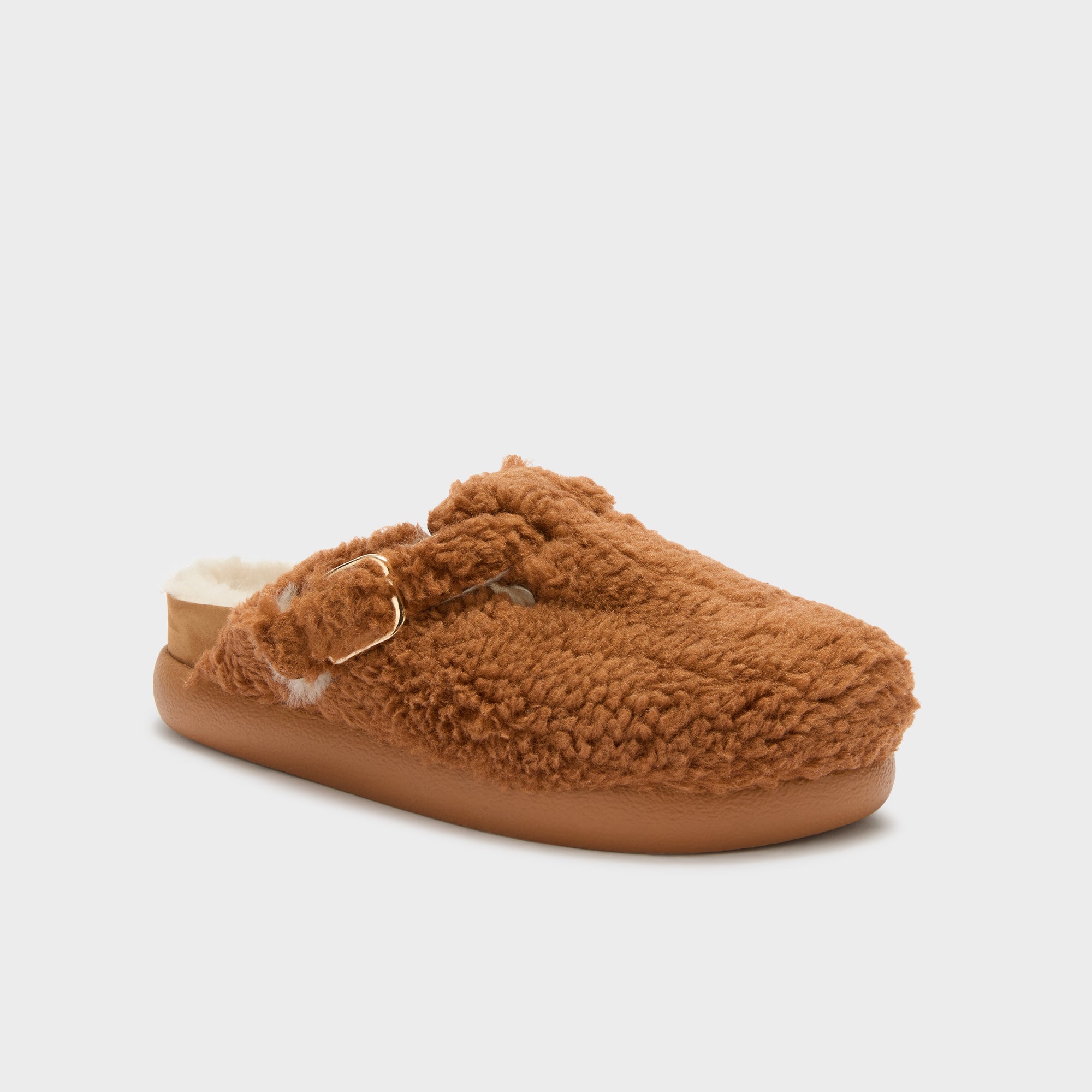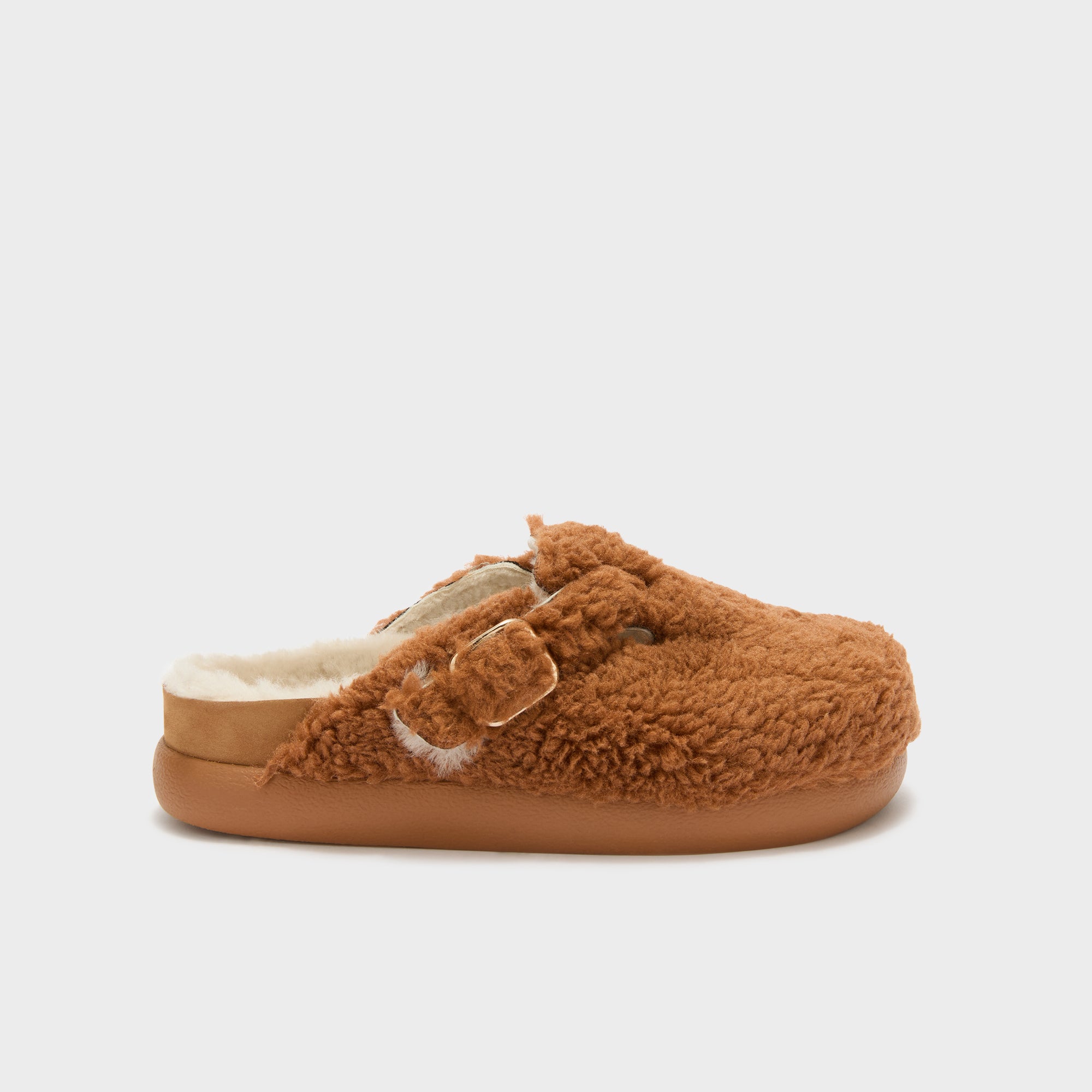 Bleiben Sie stilvoll und gemütlich mit diesen Pantoletten aus Lammfellimitat mit einer trendigen, klobigen Sohle. Sie sind auf ganztägigen Komfort ausgelegt und verfügen über eine verstellbare Schnalle und einen Rückengurt für einen sicheren Sitz.
