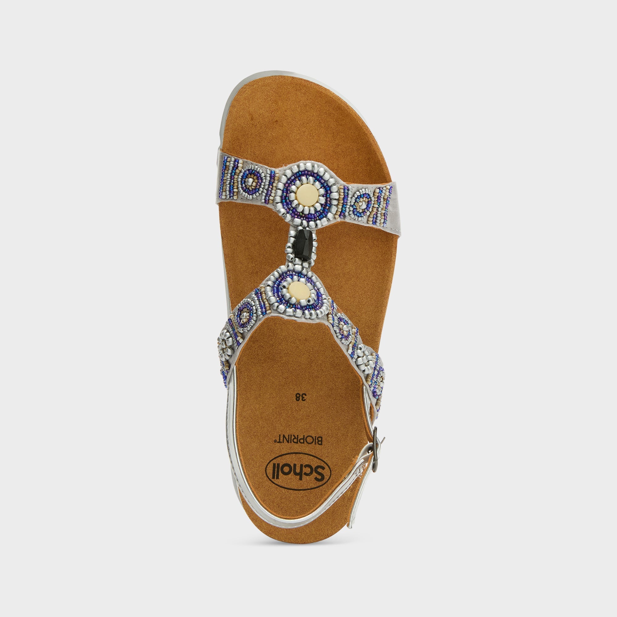 Bogotà is Scholl’s signature sandal, recognizable for its vibrant interwoven colored beads, hand-sewn. The model features a lightweight and flexible structure, with a textile upper and an EVA rubber sole. The footbed follows the foot's contour and supports your daily walks.