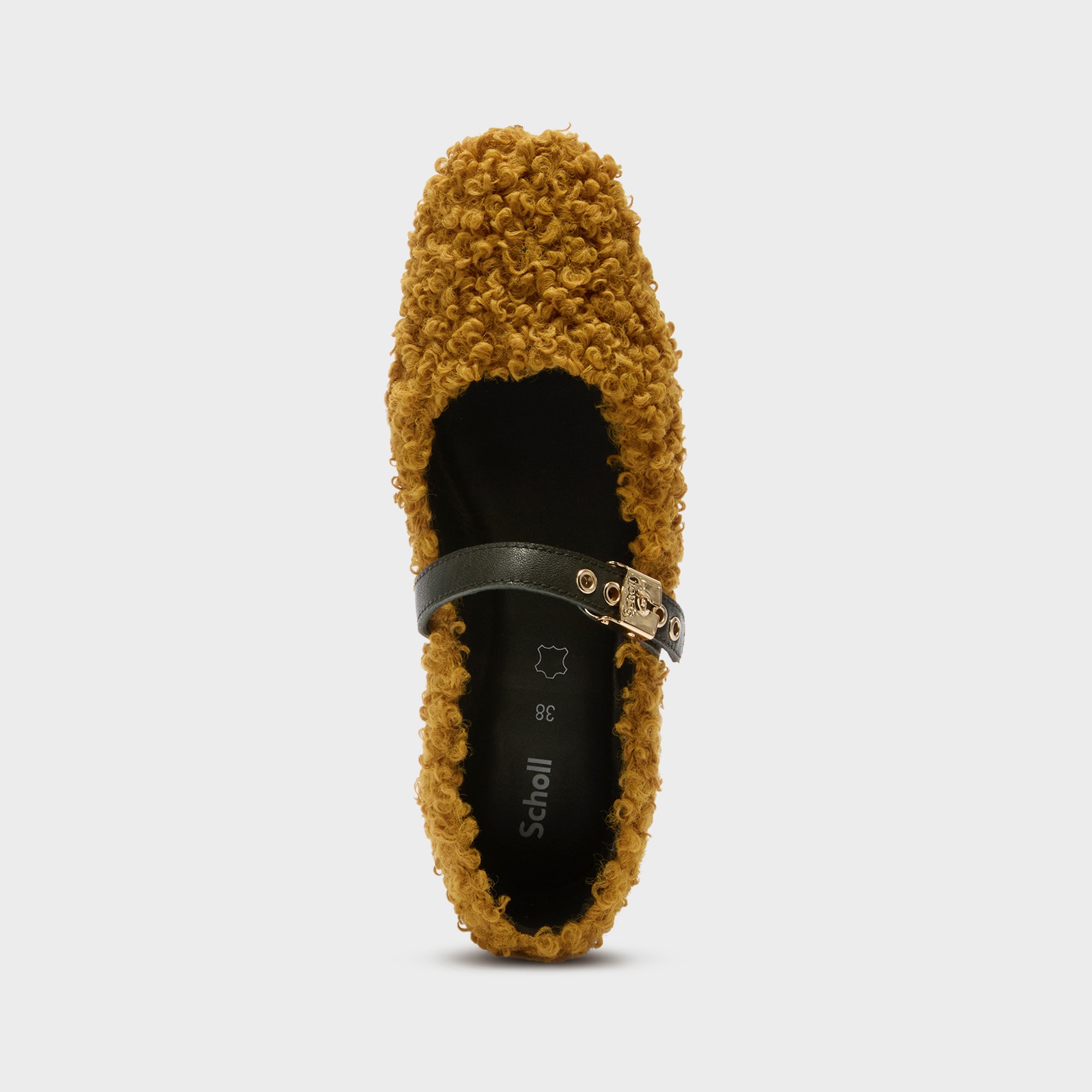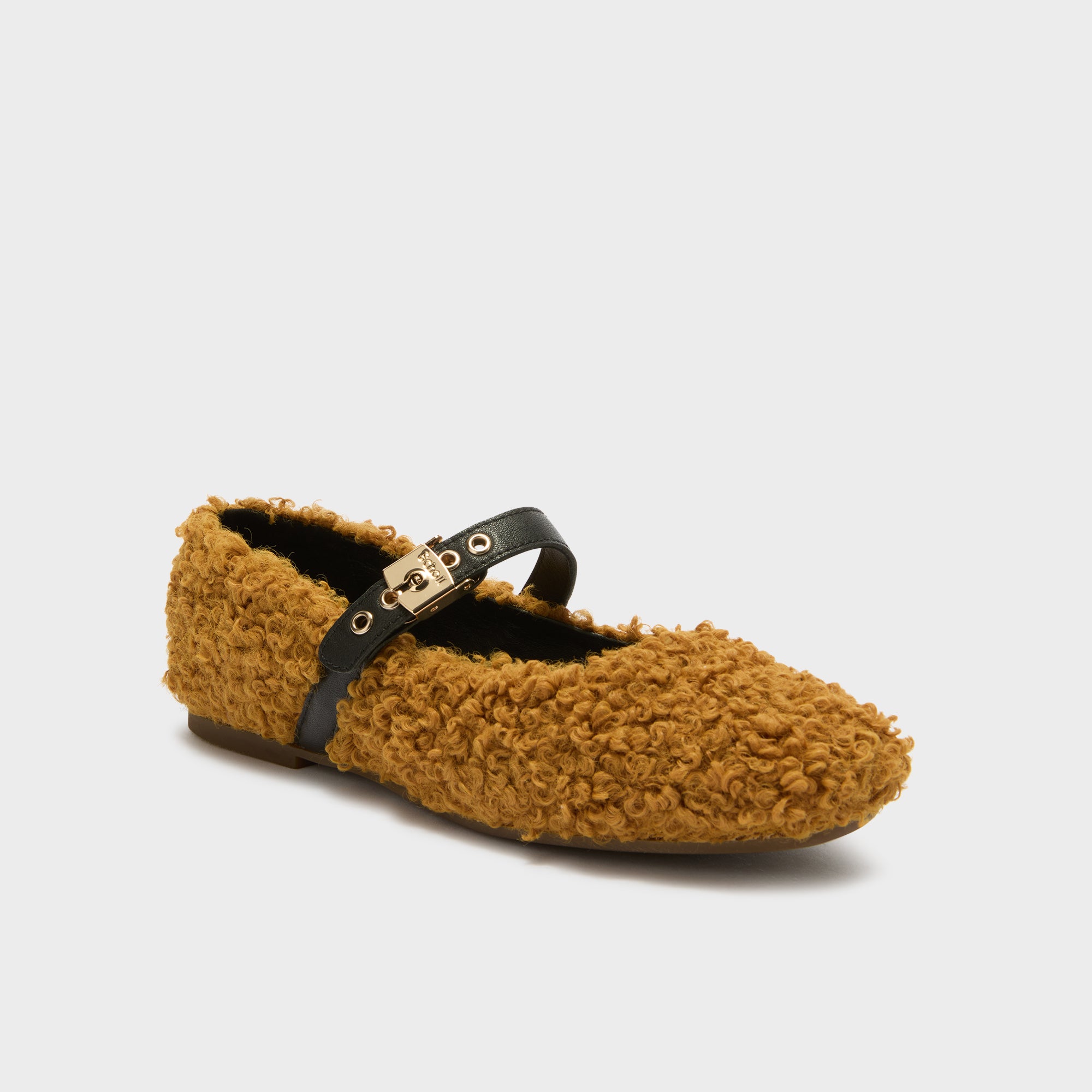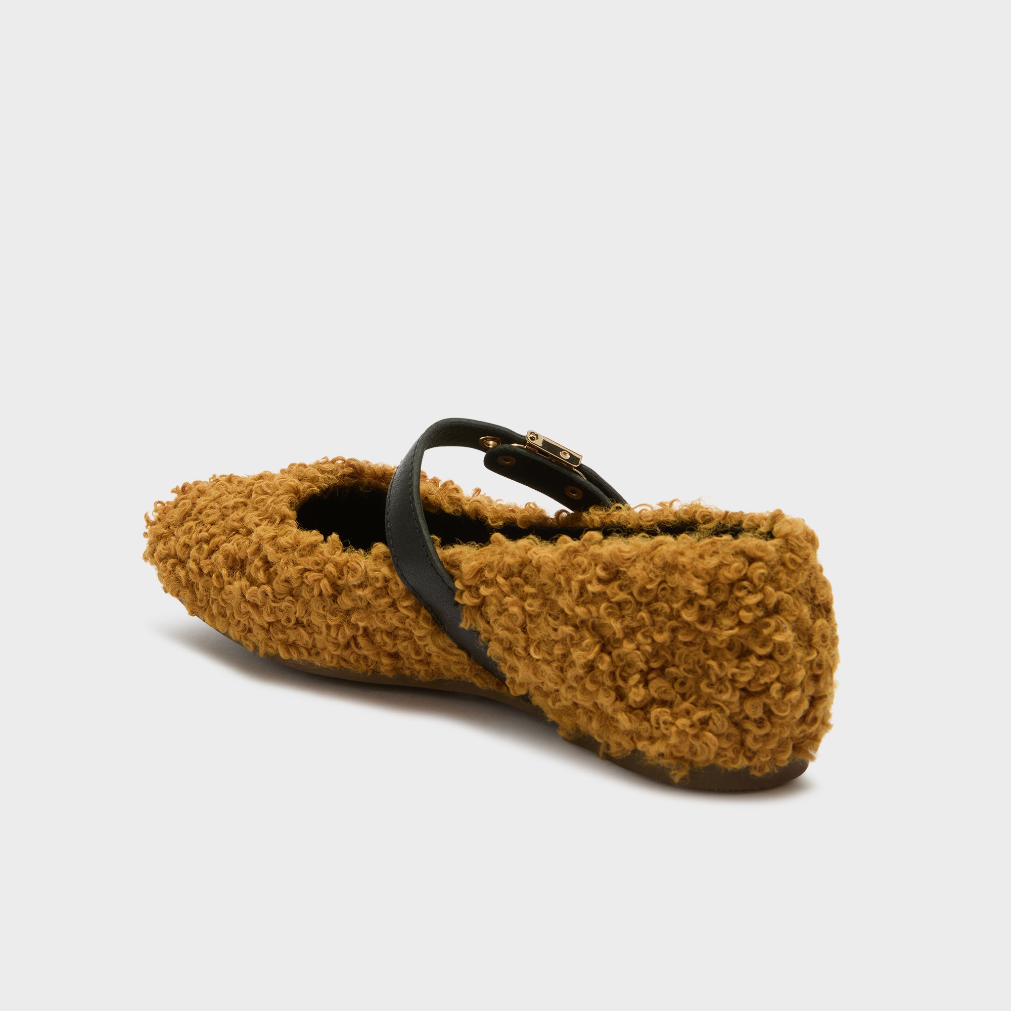 Experience cozy comfort and chic style with these teddy fur ballerinas, crafted from soft synthetic fur that wraps your feet in warmth. Featuring a sleek leather ankle strap for a secure and adjustable fit, these ballerinas combine playful texture with refined detailing.