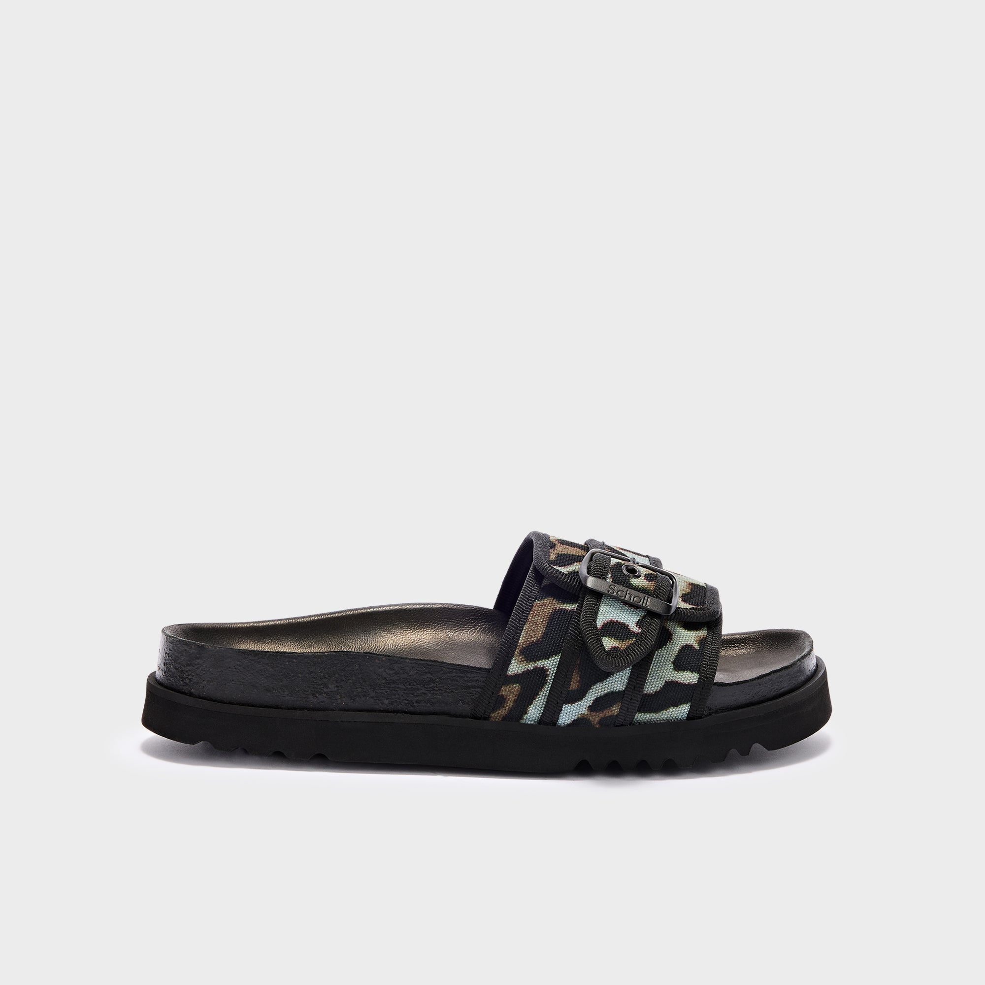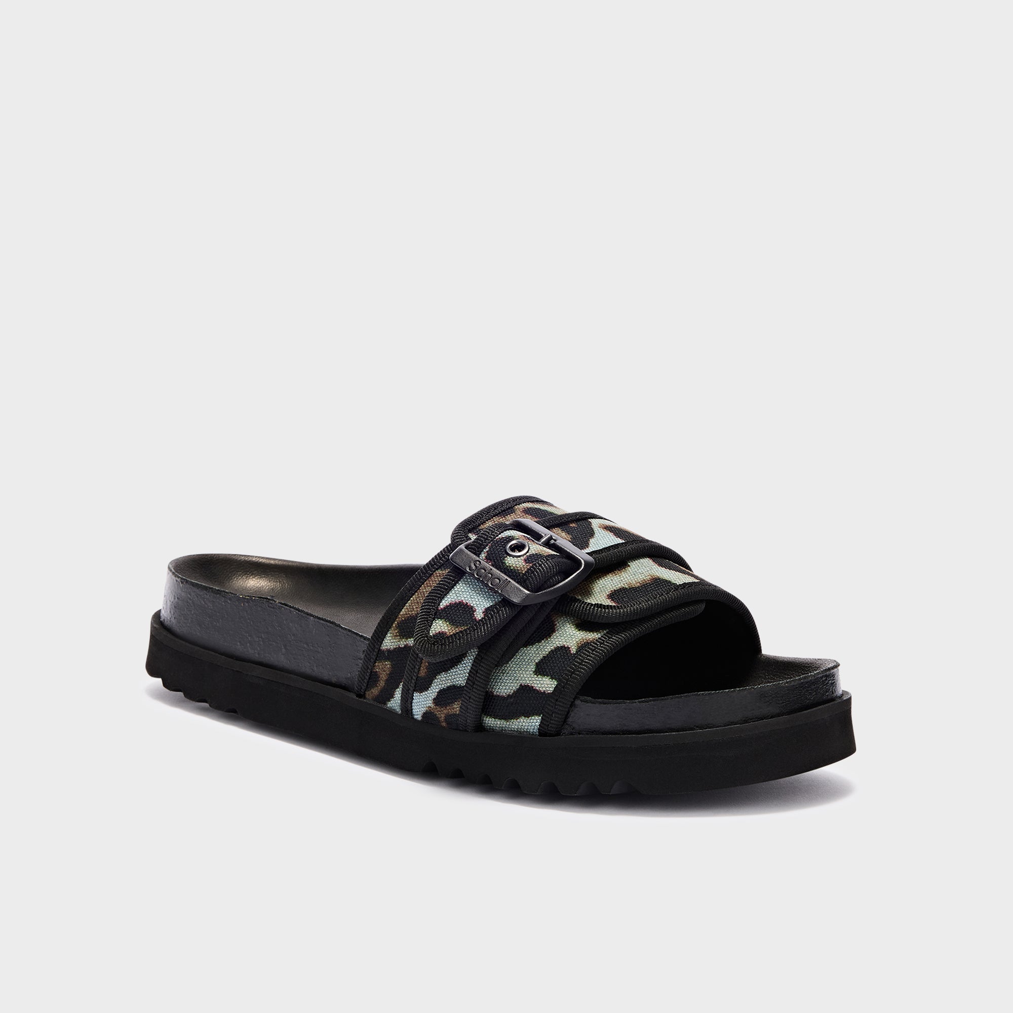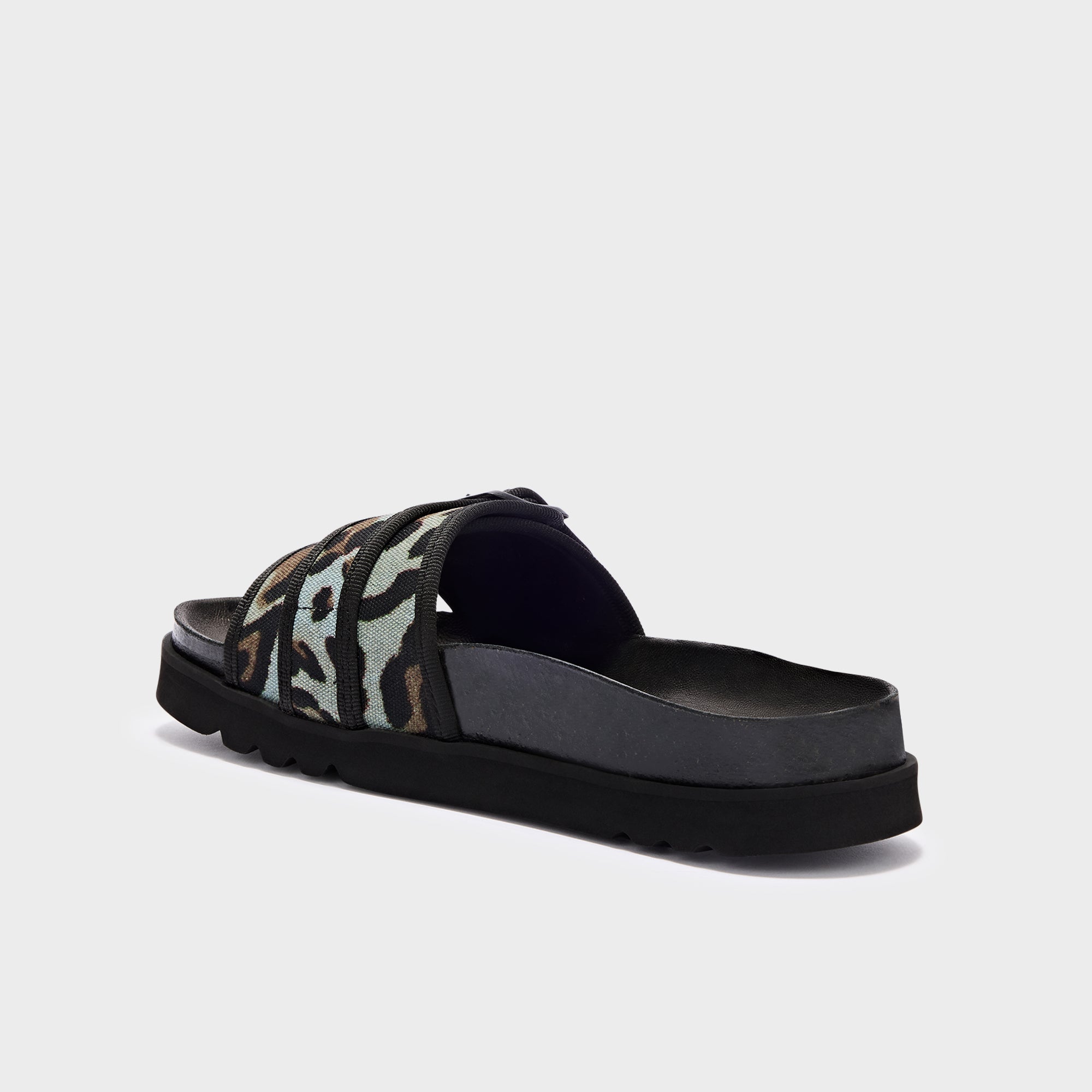 Joyce is a sandal with a minimalist line, characterized by a single animal print fabric band that wraps the front of the foot. A minimal and versatile design, created to naturally accompany different moments throughout the day.