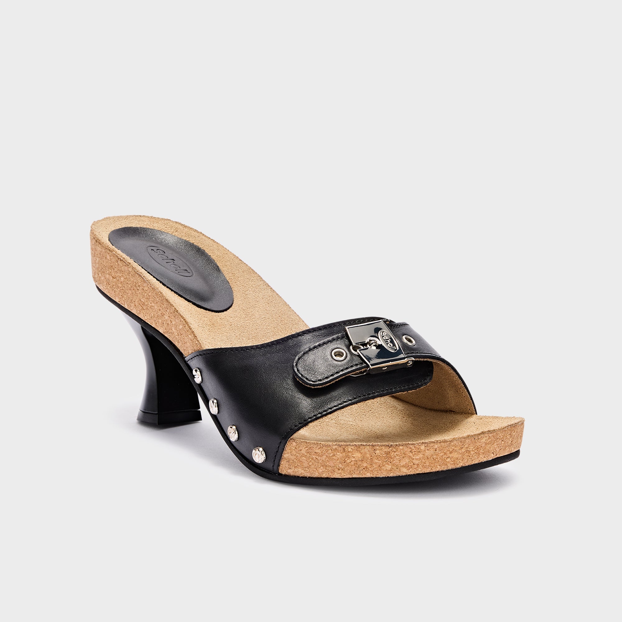 Luna is a black leather heeled sandal, designed to combine style and wearability. The adjustable strap with iconic silver buckle ensures a stable fit. The 5 cm heel, together with the padded heel cushion, makes it even more comfortable during extended wear. Made in Italy.