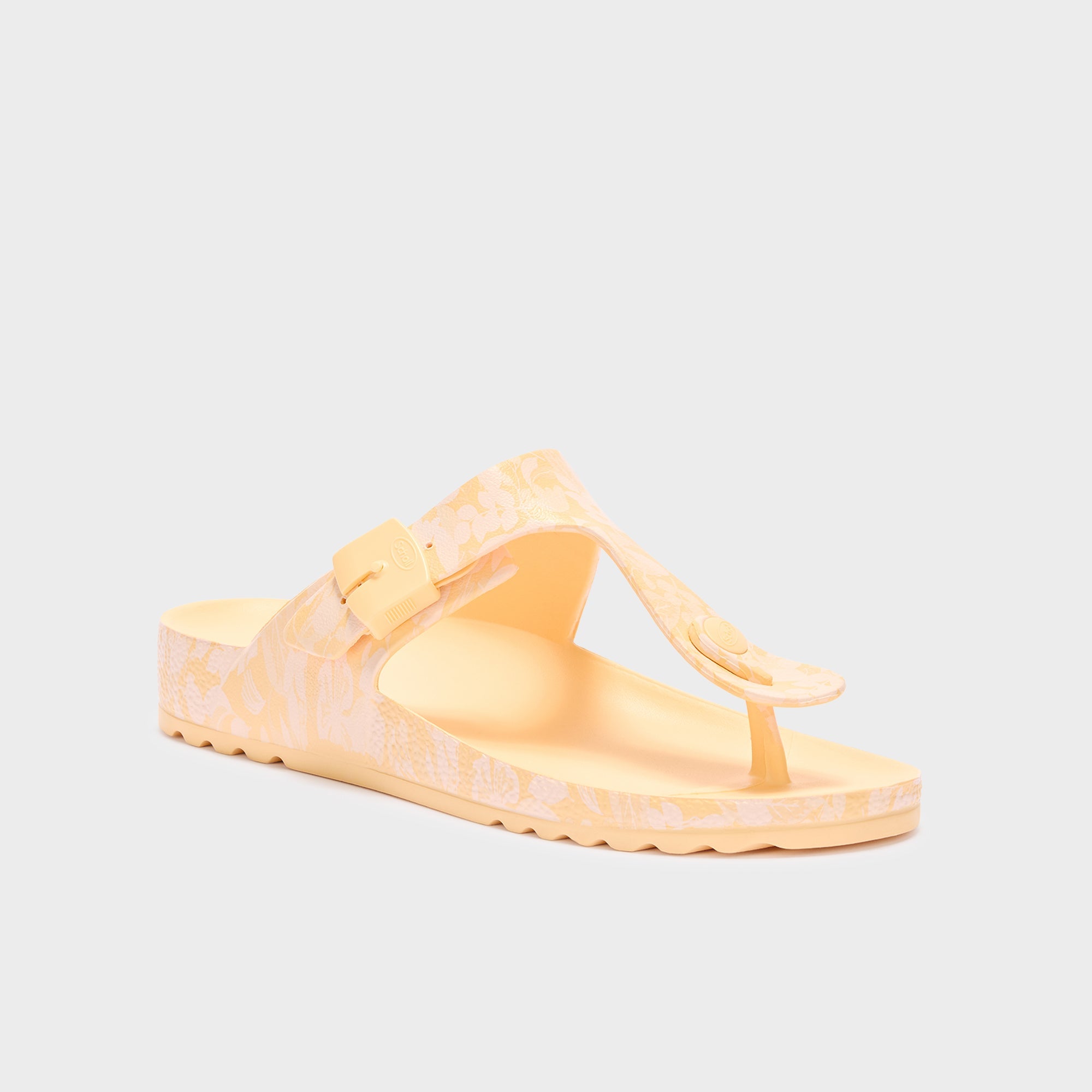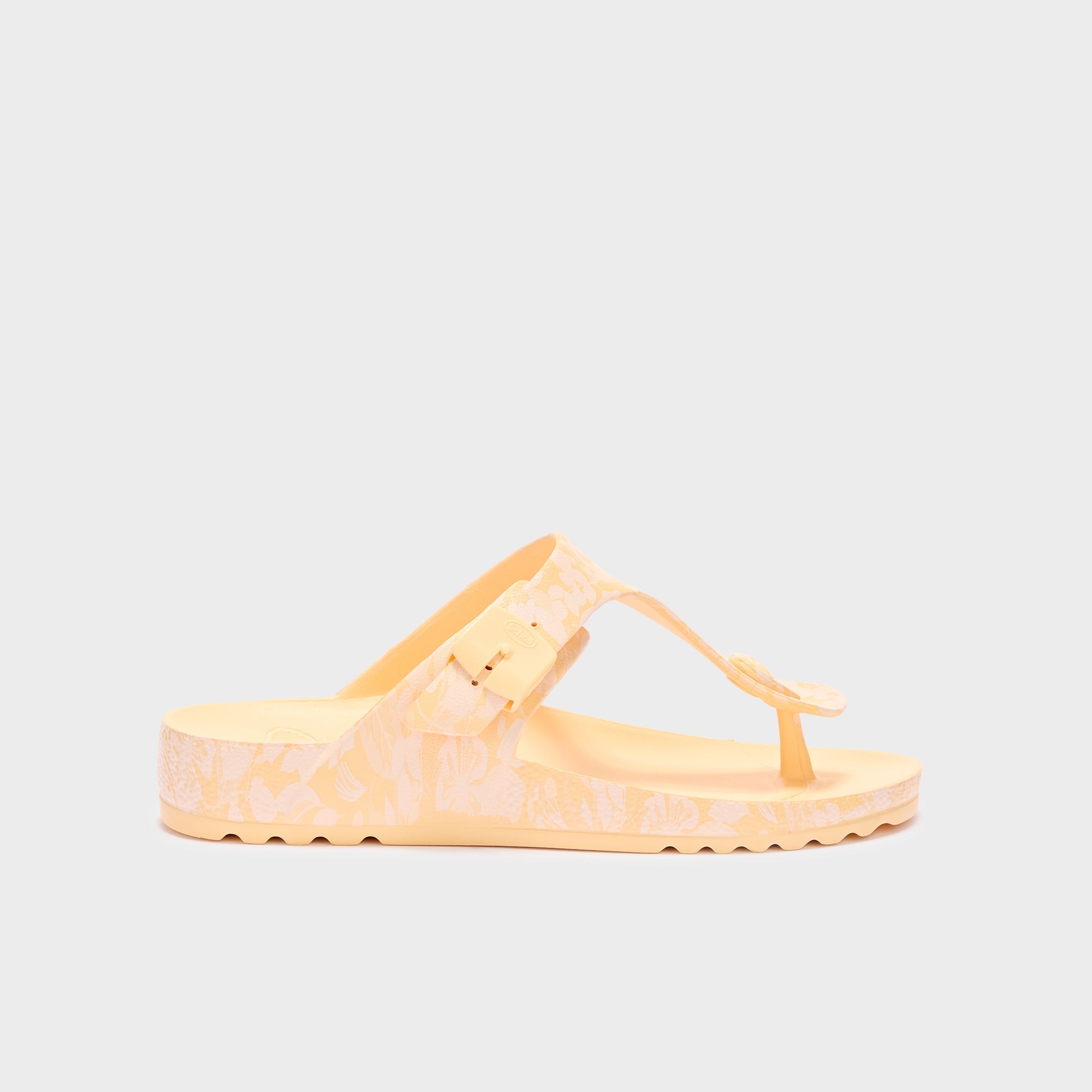 Bahia is an EVA rubber flip-flop, lightweight and flexible. The footbed and inside of the upper feature a 'sand effect' texture that improves grip even with wet feet. The iconic buckle design allows for upper adjustment. The material dries quickly, making it particularly suitable for pool, spa, or gym.