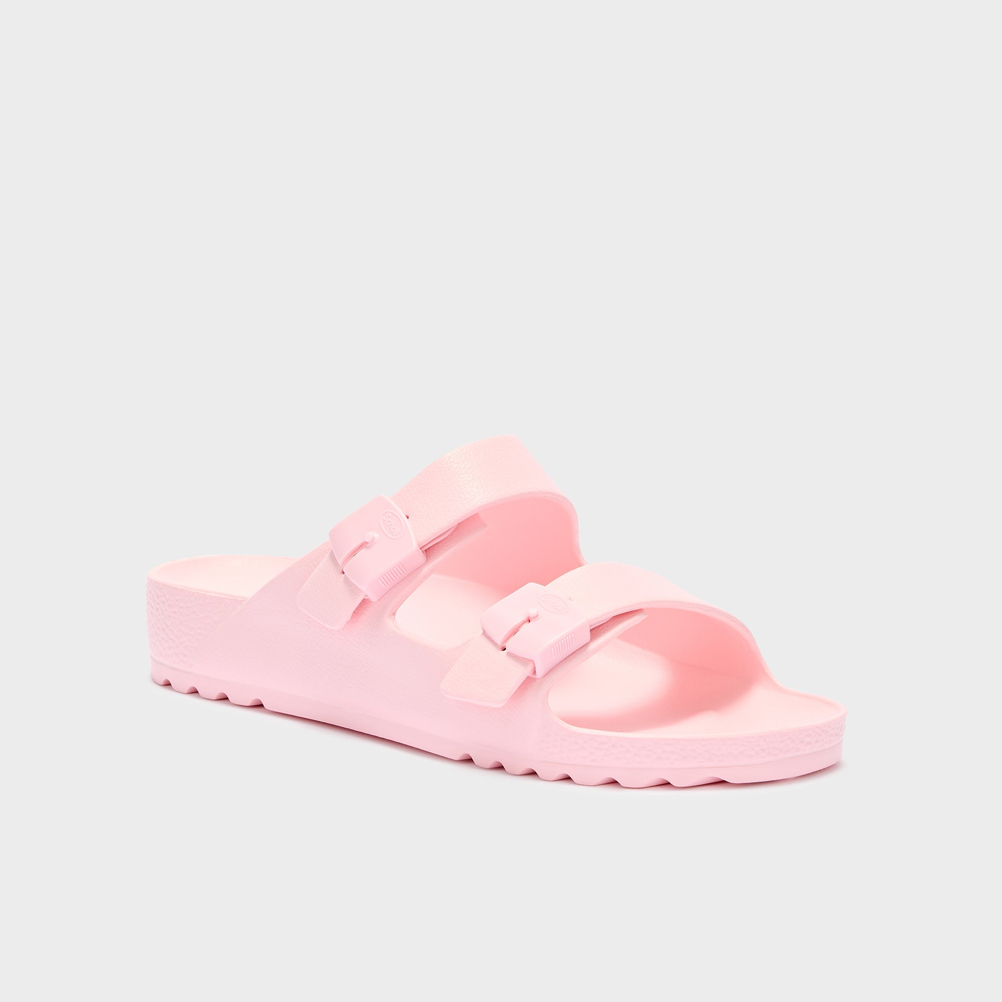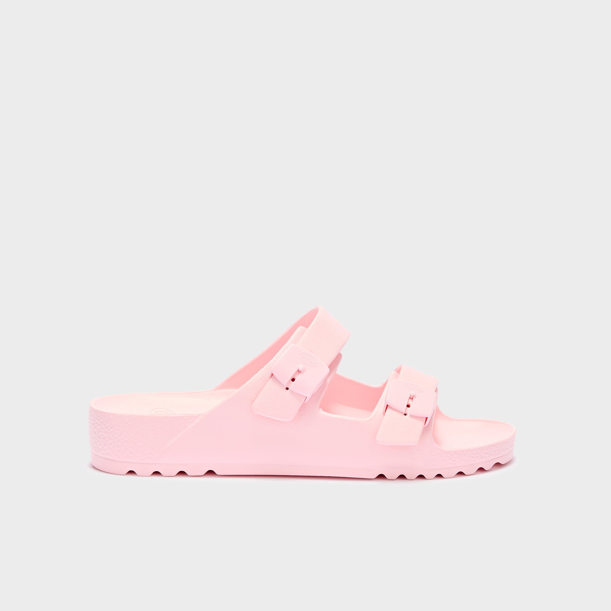 Bahia is an EVA rubber slipper with dual adjustable straps, designed for a stable and adaptable fit. The footbed and inside of the upper feature a 'sand effect' texture that improves grip even with wet feet. The iconic buckle design allows for strap adjustment. The material dries quickly, making it particularly suitable for pool, spa, or gym. Bioprint® is an anatomical footbed designed to support the foot's natural structure and promote proper posture while walking.