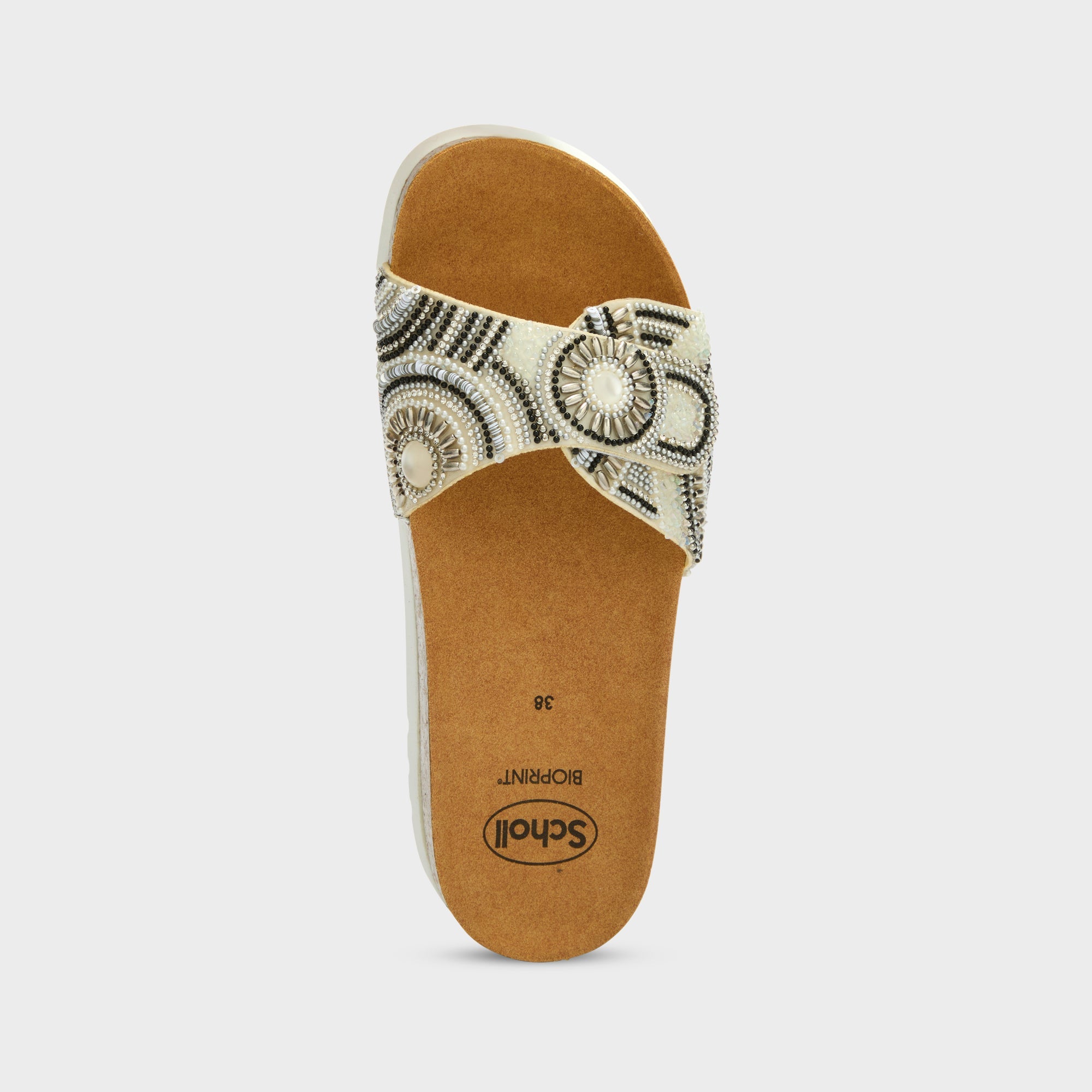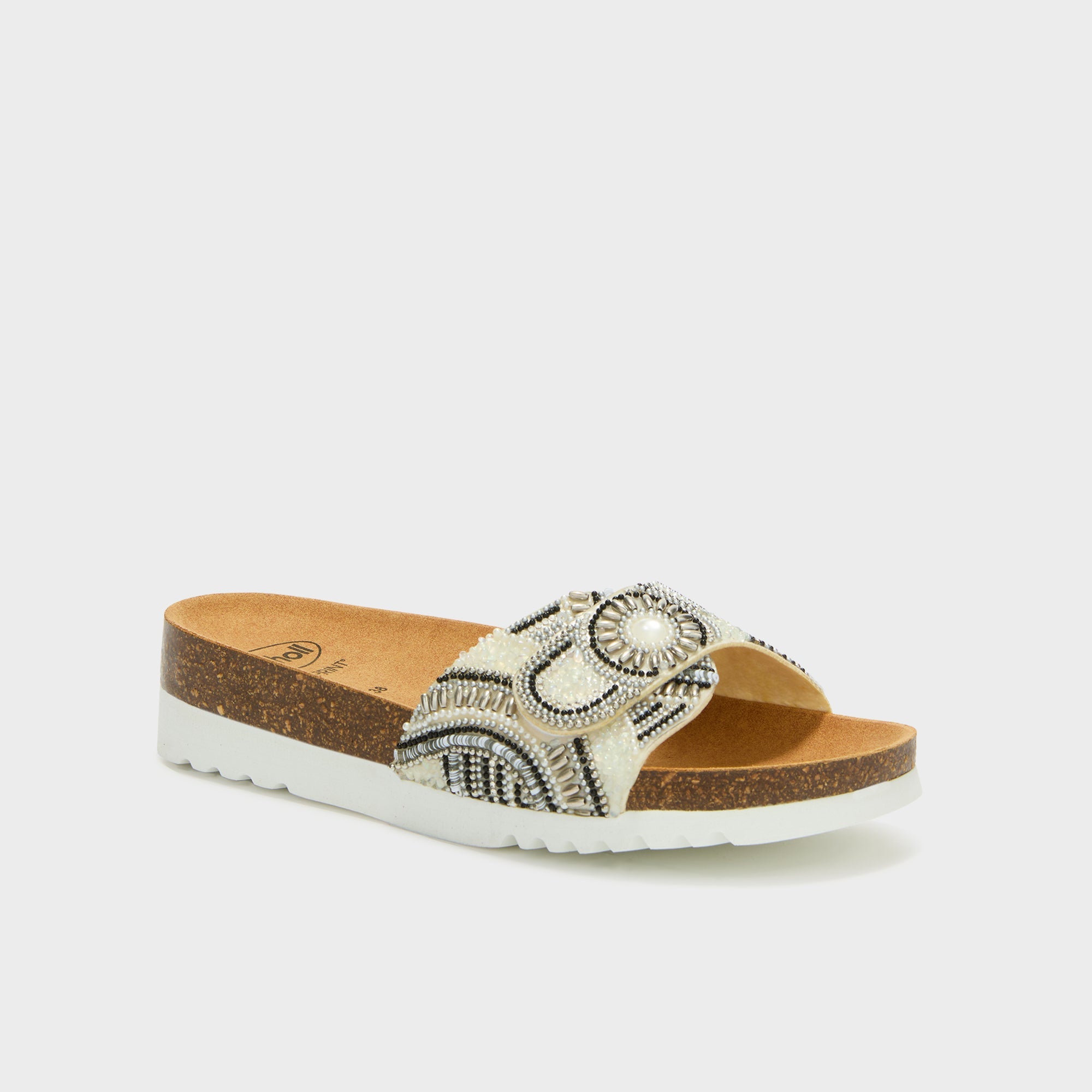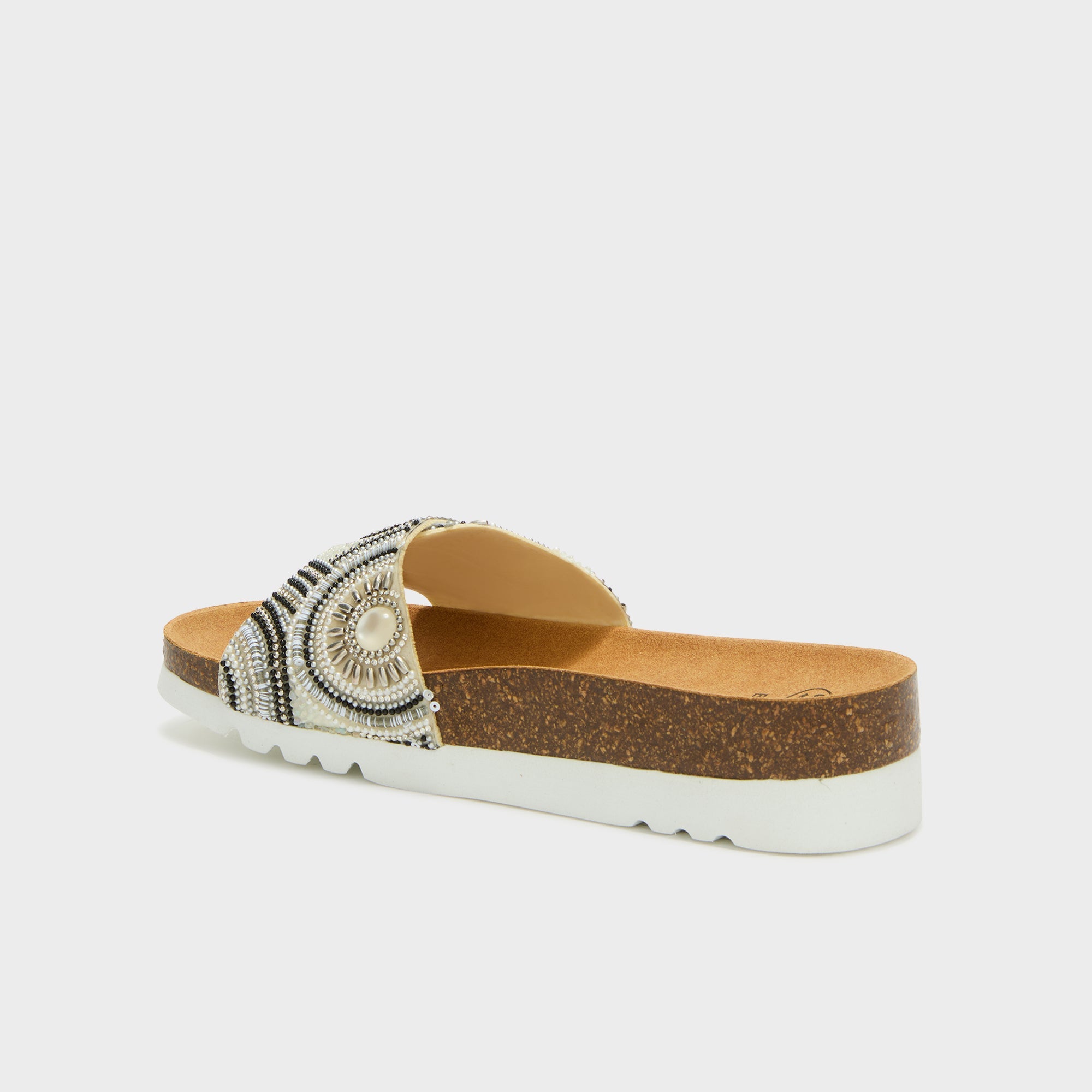 Cadice is a sandal with a simple and functional style, suitable for everyday wear. The microfiber upper features an adjustable velcro strap, decorated with hand-embroidered colored beads. The cork footbed follows the foot's contour and supports walking, with a constant sense of comfort. Bioprint® is an anatomical footbed designed to support the foot's natural structure and promote proper posture while walking.