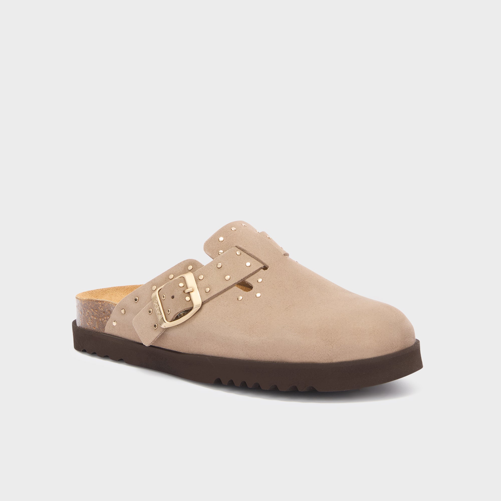 Beatriz mules combine comfort and character in an enveloping design that transitions effortlessly from day to evening. This variant is crafted from suede leather with decorative studs. The cork footbed follows the foot's contour and supports your daily walks.