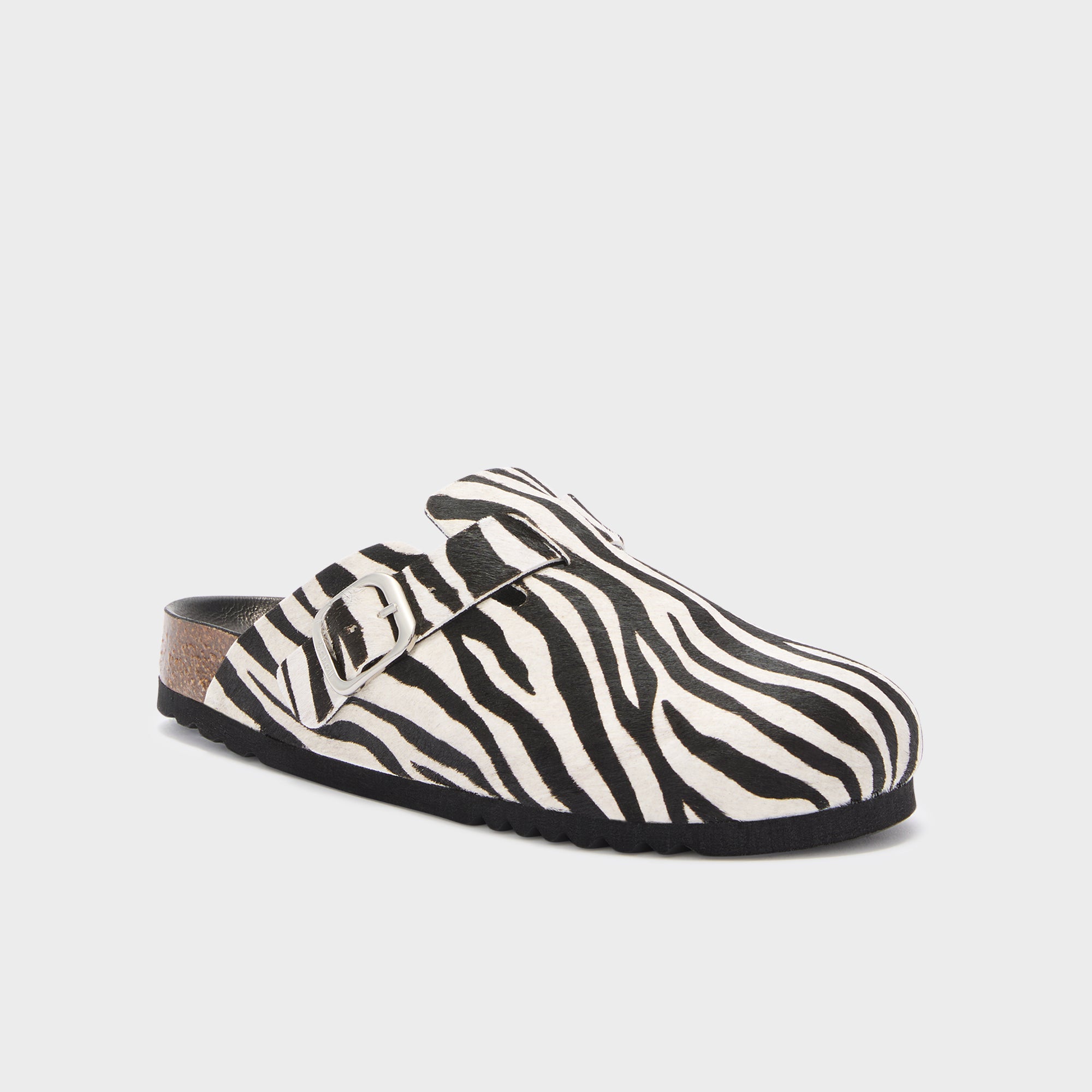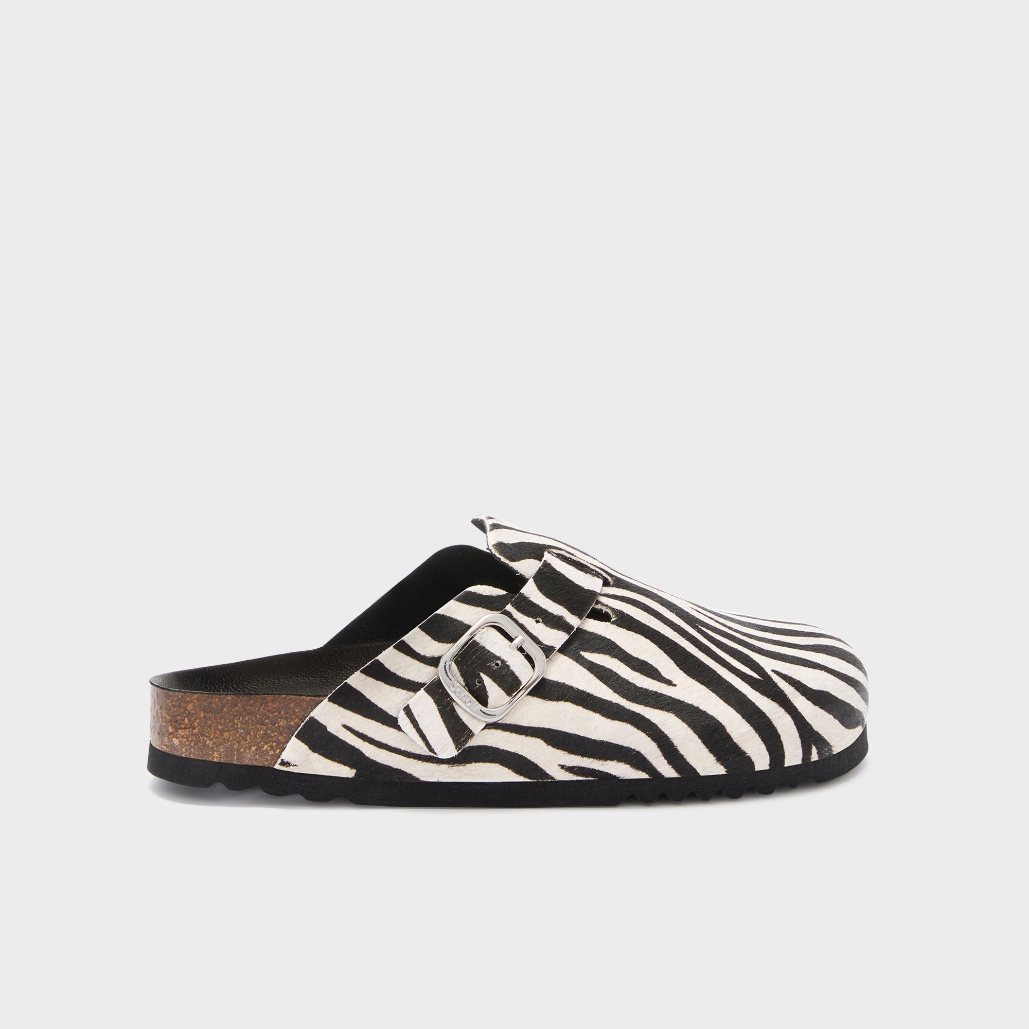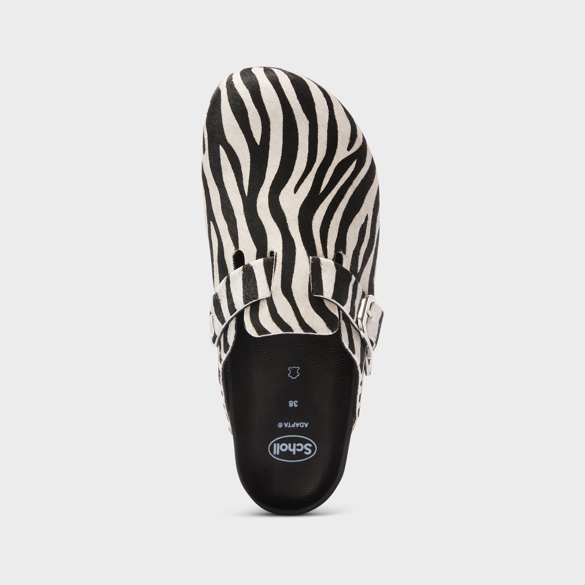 Fae is Scholl's iconic mule, presented in a pony effect leather version with an animal print that adds character to a timeless silhouette. The closed shape and adjustable metal buckle strap make the model practical and adaptable, while maintaining a bold yet balanced style. A classic and versatile mule, designed to be worn on any occasion.