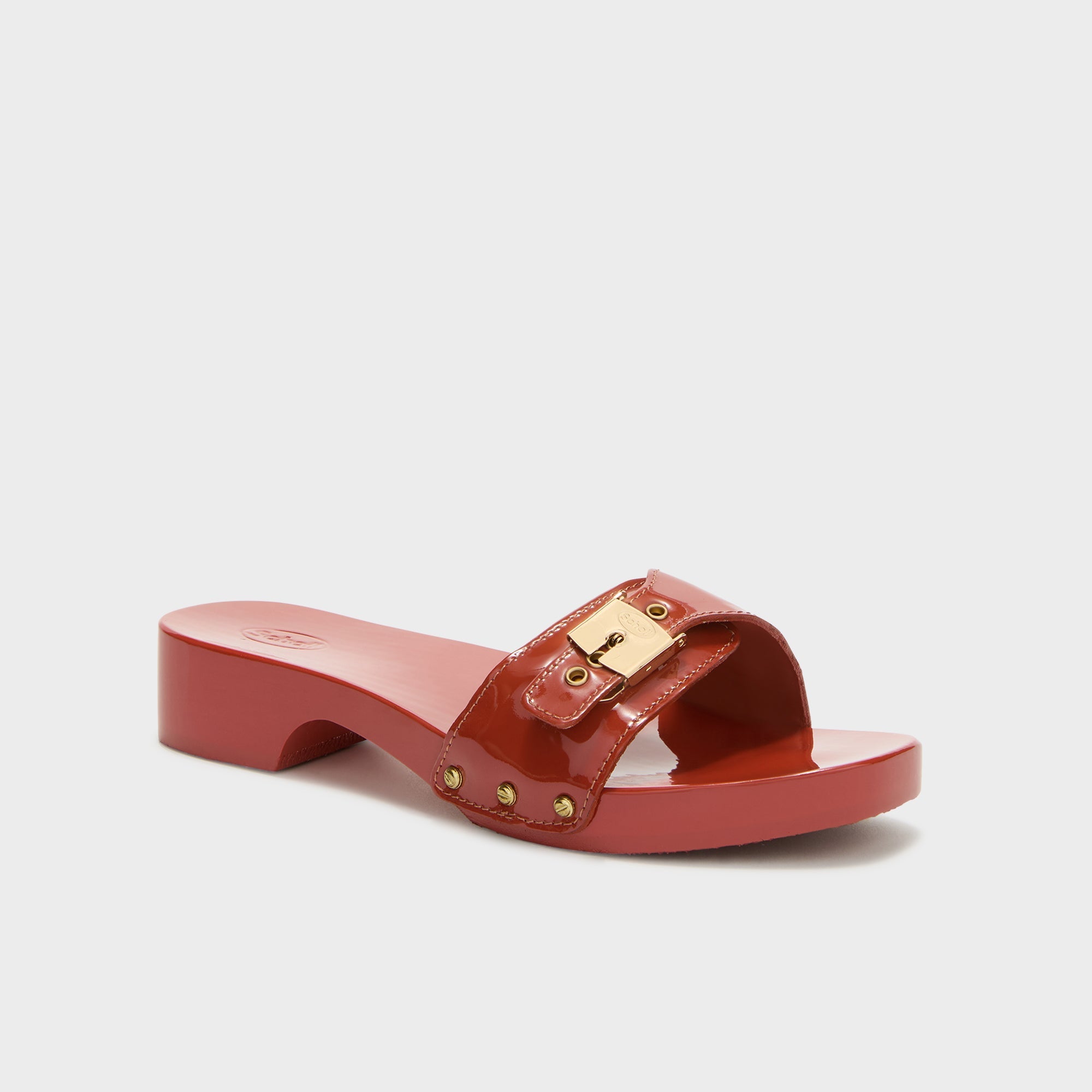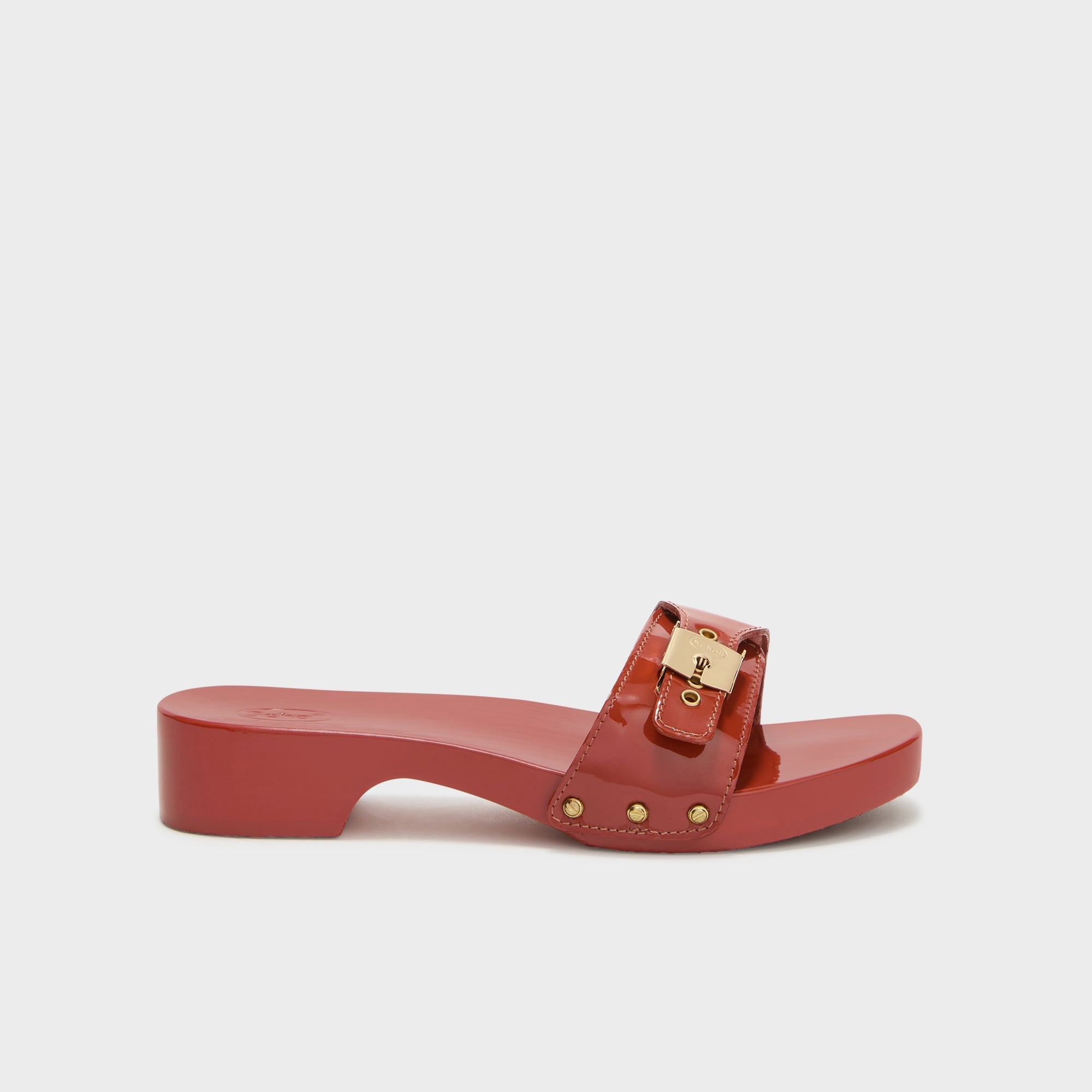 Pescura Cameron es la reinterpretación más estilizada y femenina del clásico Pescura Heel. El tacón más fino de 3,5 cm y el empeine más estrecho dan al modelo un perfil más afilado. El acabado lacado añade brillo y elegancia, realzando el refinamiento de la sandalia.