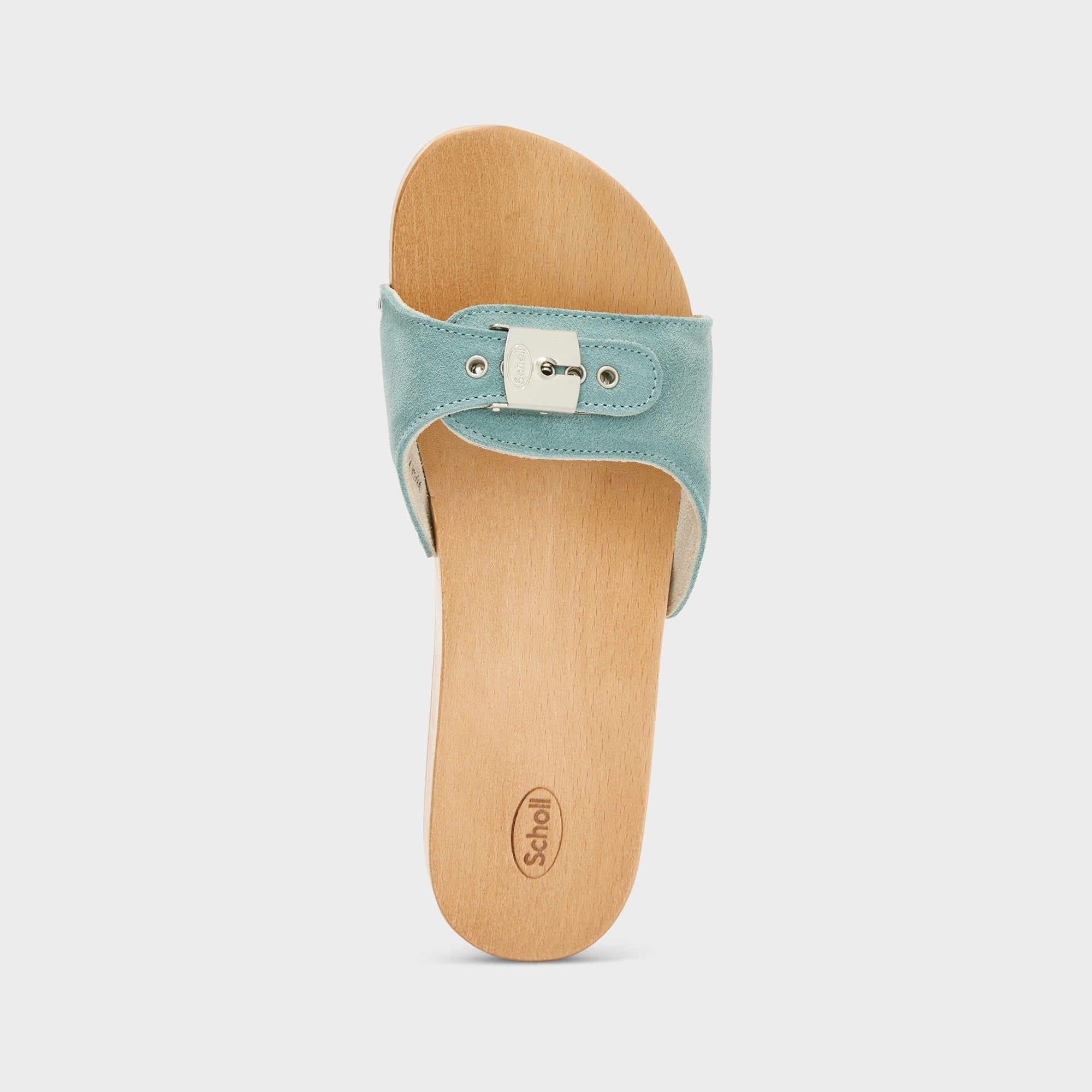 El Pescura Flat Flex es la nueva sandalia de madera para hombre que combina el estilo clásico de Scholl con un confort superior. La plantilla de madera se hace más flexible gracias a un inserto de goma integrado en el centro, para un paso más natural, cómodo y menos estático.