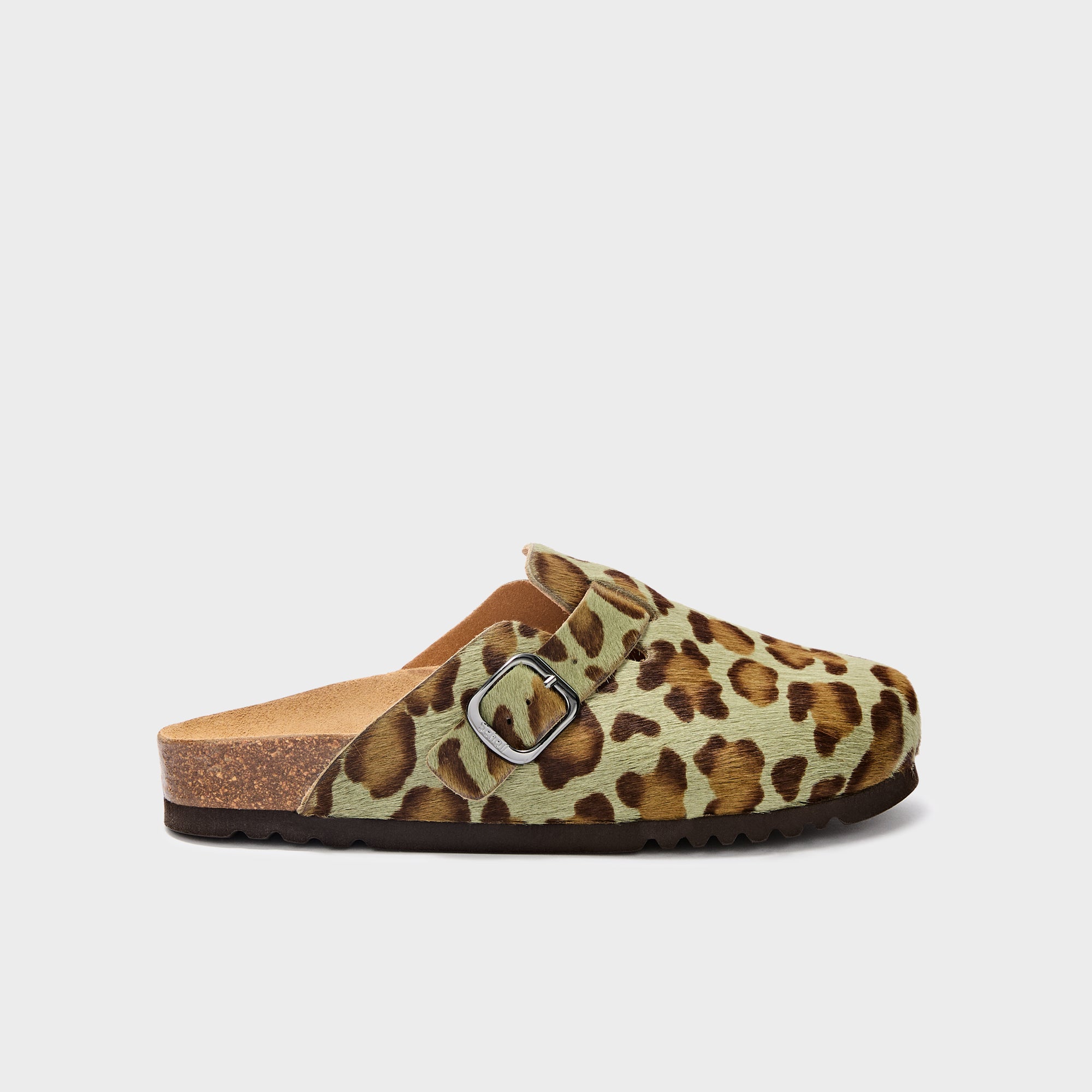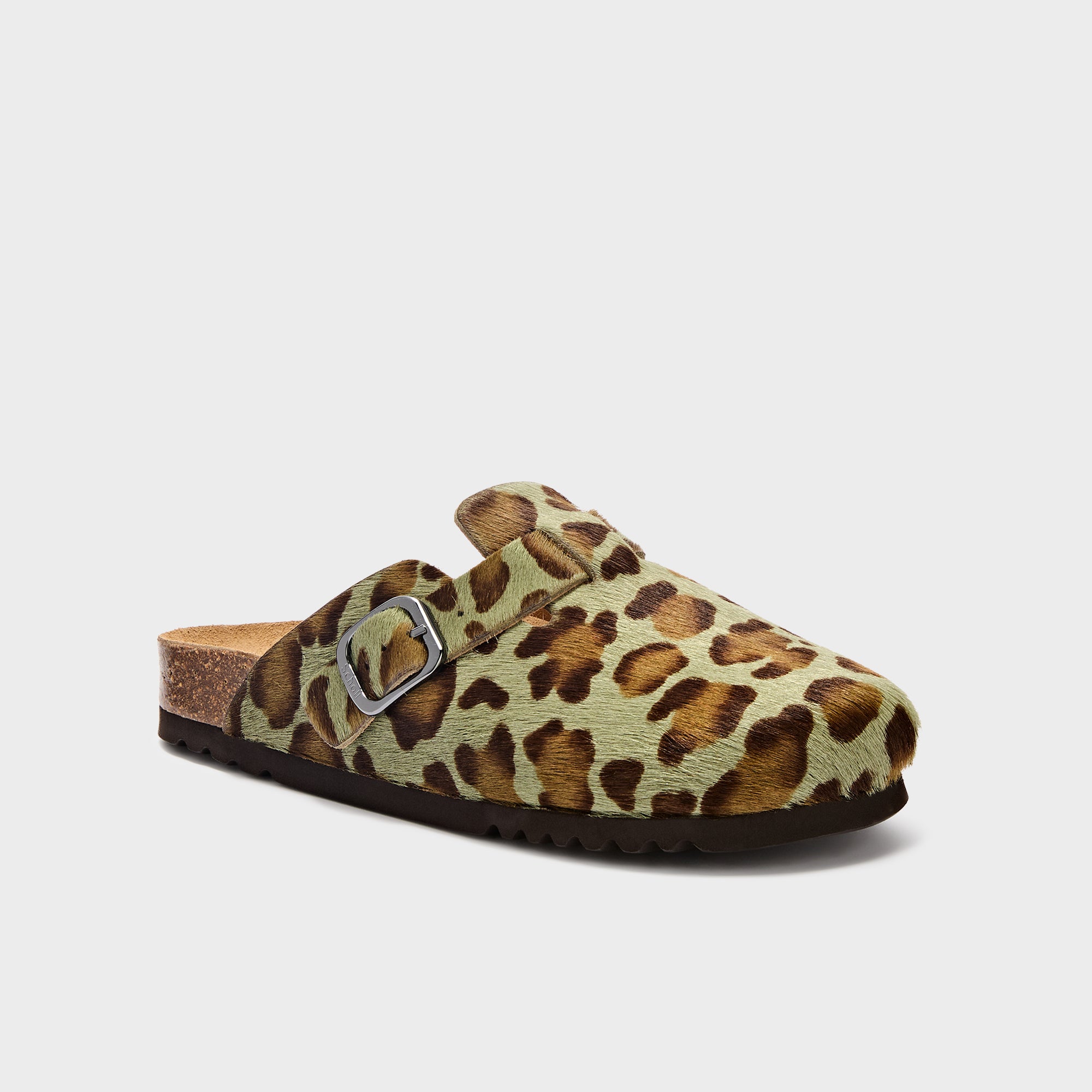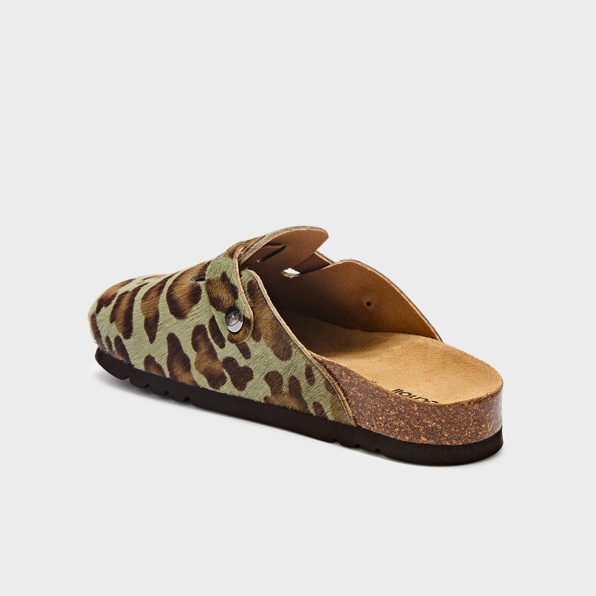 Confectionnée en cuir de poulain, l’empeigne présente un motif animalier qui ajoute de la texture et de la personnalité. La sangle réglable avec une boucle métallique assure un ajustement sûr, tandis que la semelle anatomique en liège-latex offre un soutien et un confort naturels. Doté d’une semelle extérieure légère en caoutchouc, ce modèle à enfiler allie charme sauvage et praticité au quotidien.
