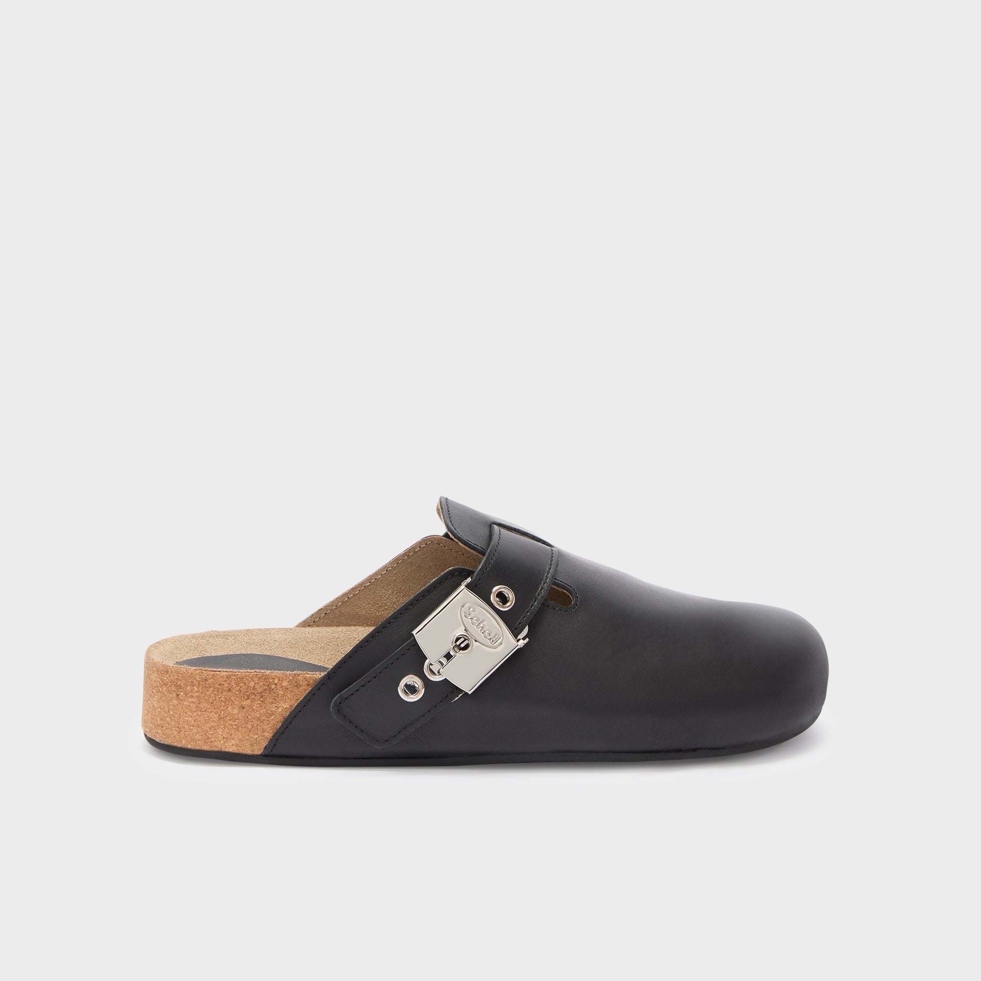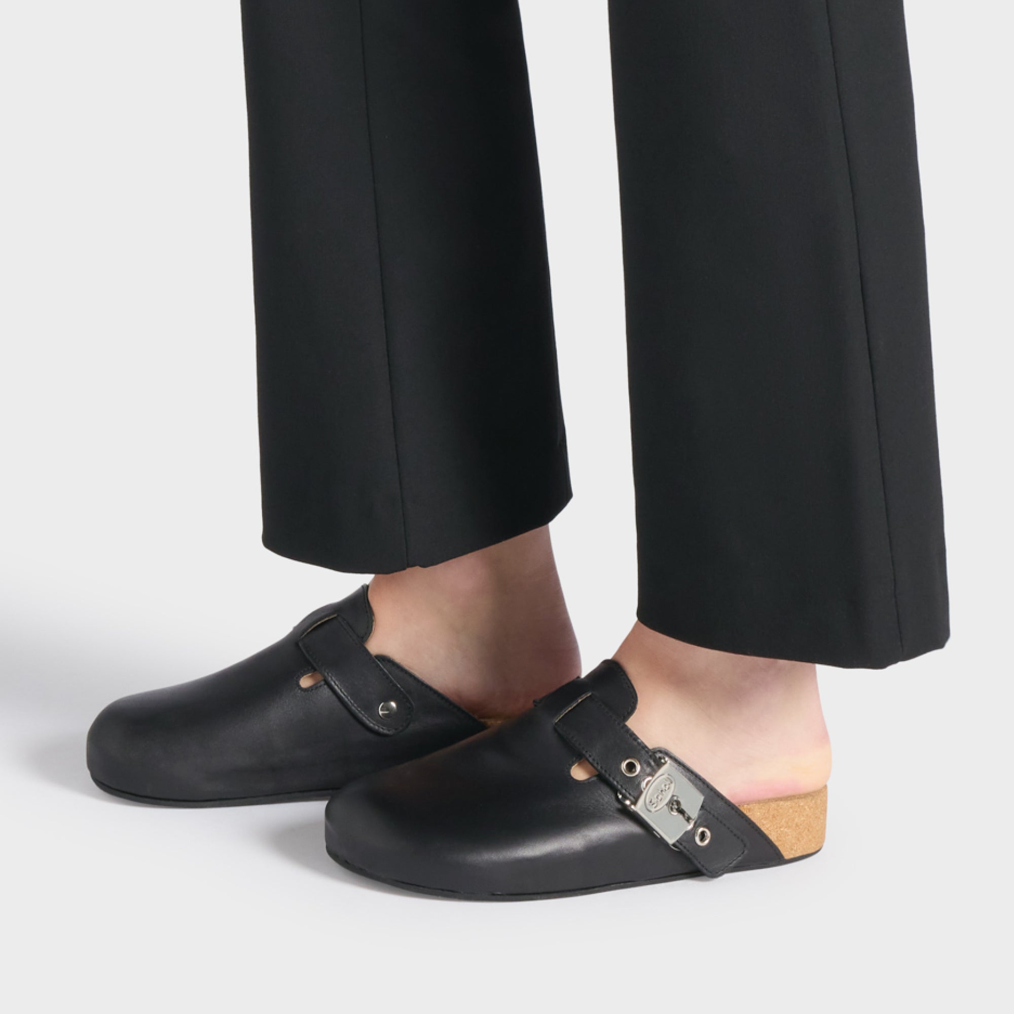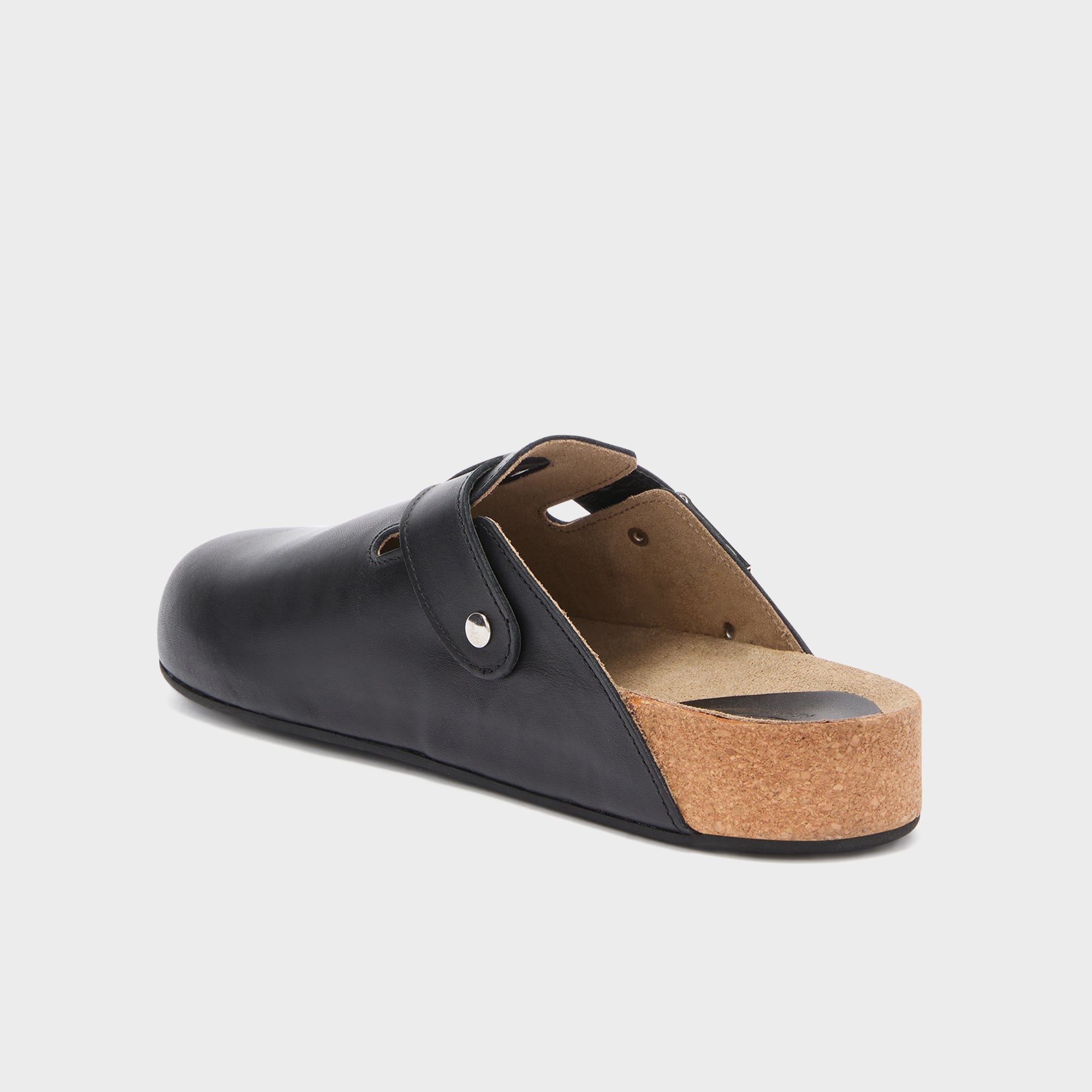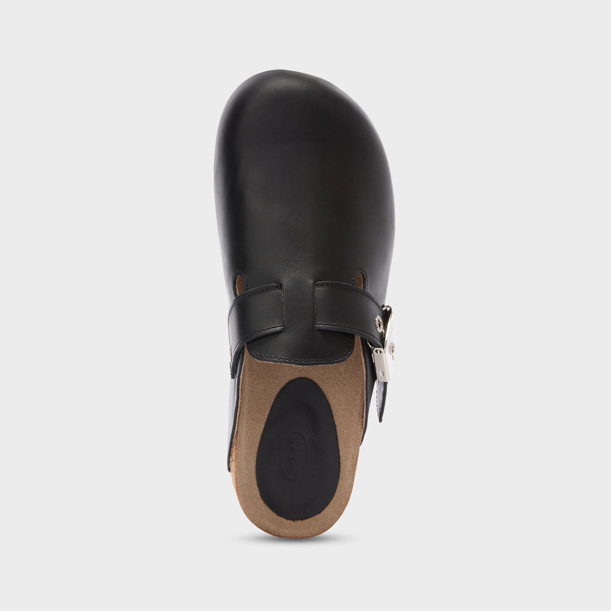 Luna è un sabot in pelle nera, caratterizzato da una linea pulita ed essenziale. La fascia regolabile con fibbia iconica argentata consente un adattamento preciso al piede, mentre il cuscinetto imbottito sul tallone lo rende ancora più comodo anche durante un utilizzo prolungato. Prodotto in Italia.