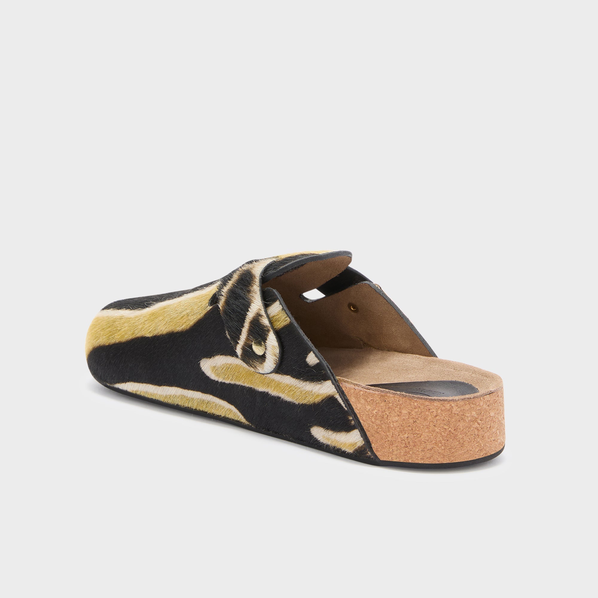 Luna è un sabot in pelle effetto cavallino con stampa animalier, pensato per un’estetica decisa e contemporanea. La fascia regolabile con fibbia iconica dorata definisce il modello, mentre il cuscinetto imbottito sul tallone lo rende ancora più comodo durante l’uso. Prodotto in Italia.