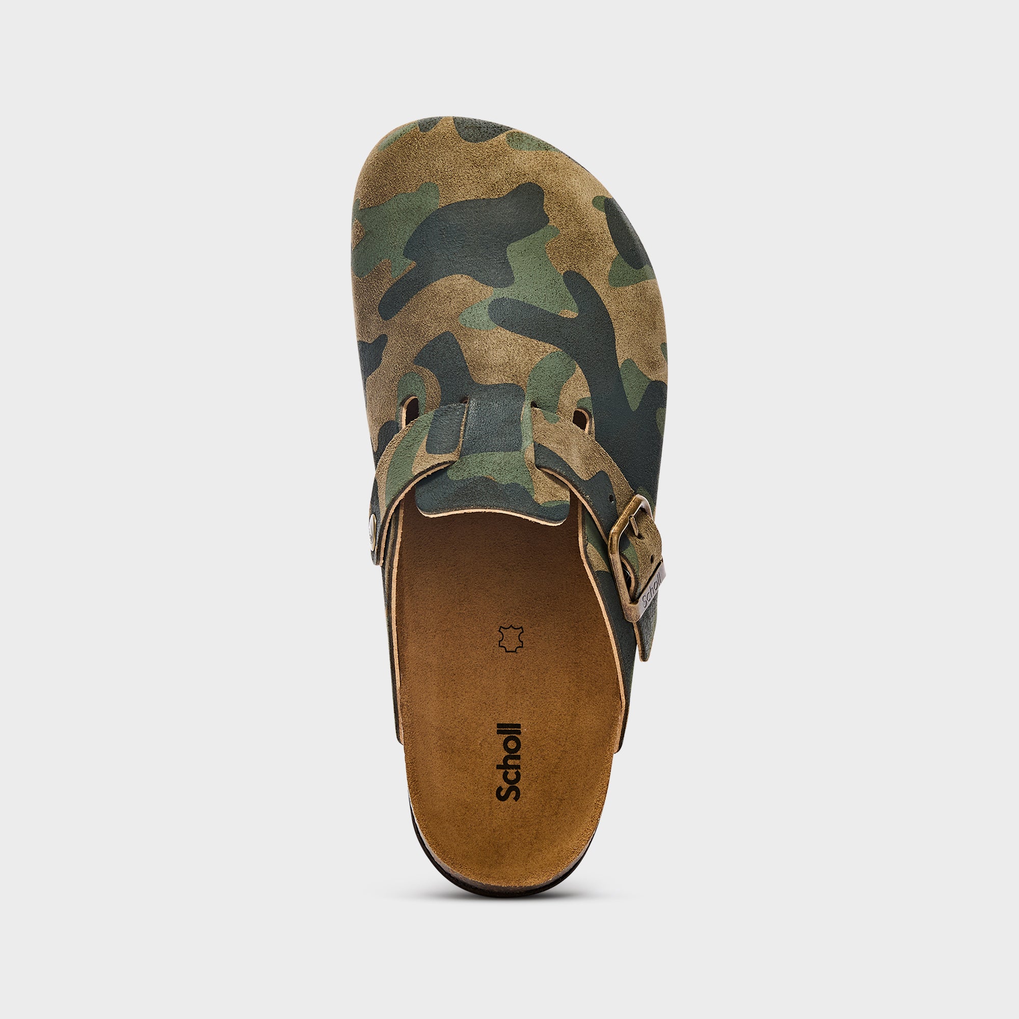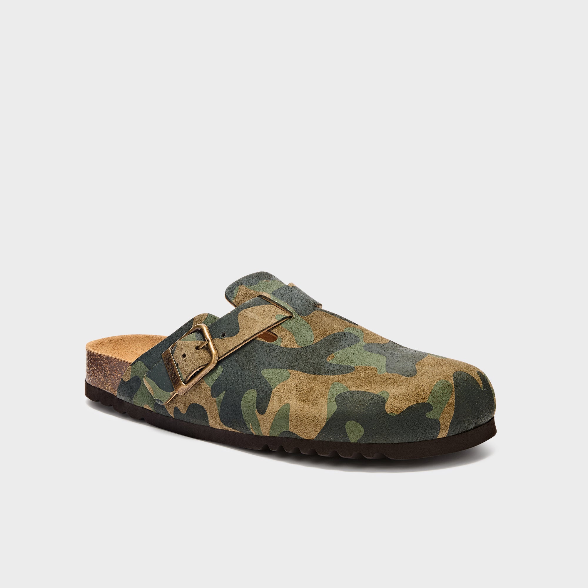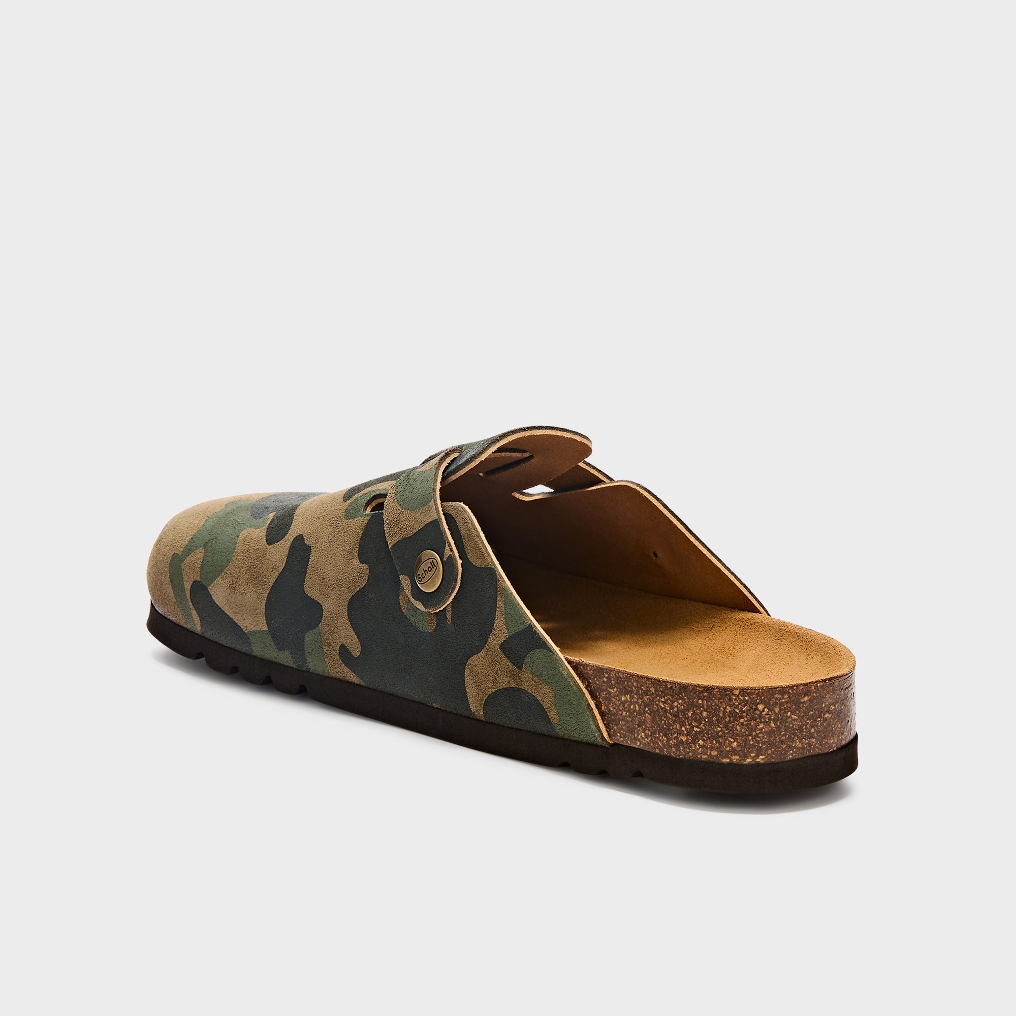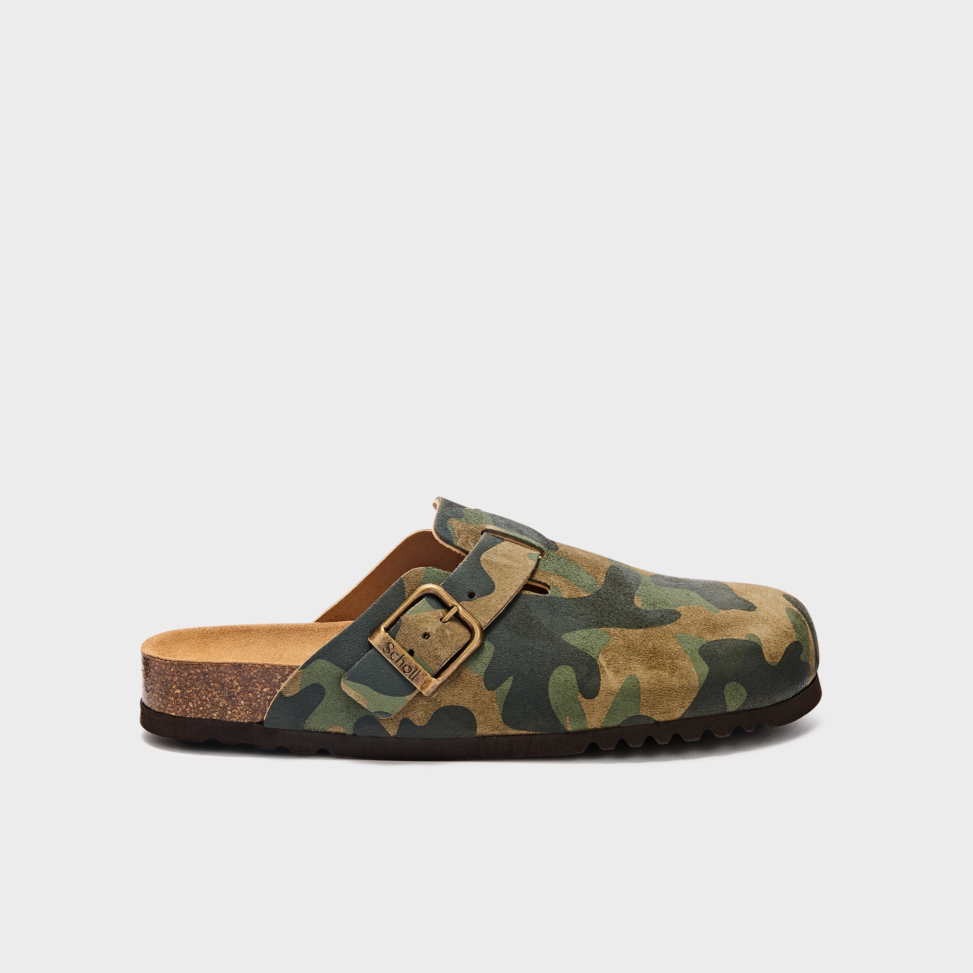 Realizzato in suede, questo sabot presenta un esclusivo motivo mimetico in tonalità naturali, che unisce stile e comfort. La suola in sughero garantisce leggerezza e comfort per tutto il giorno.