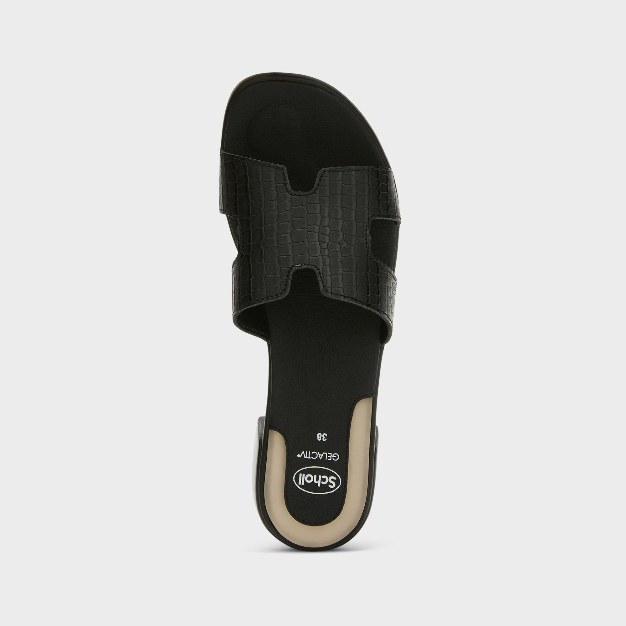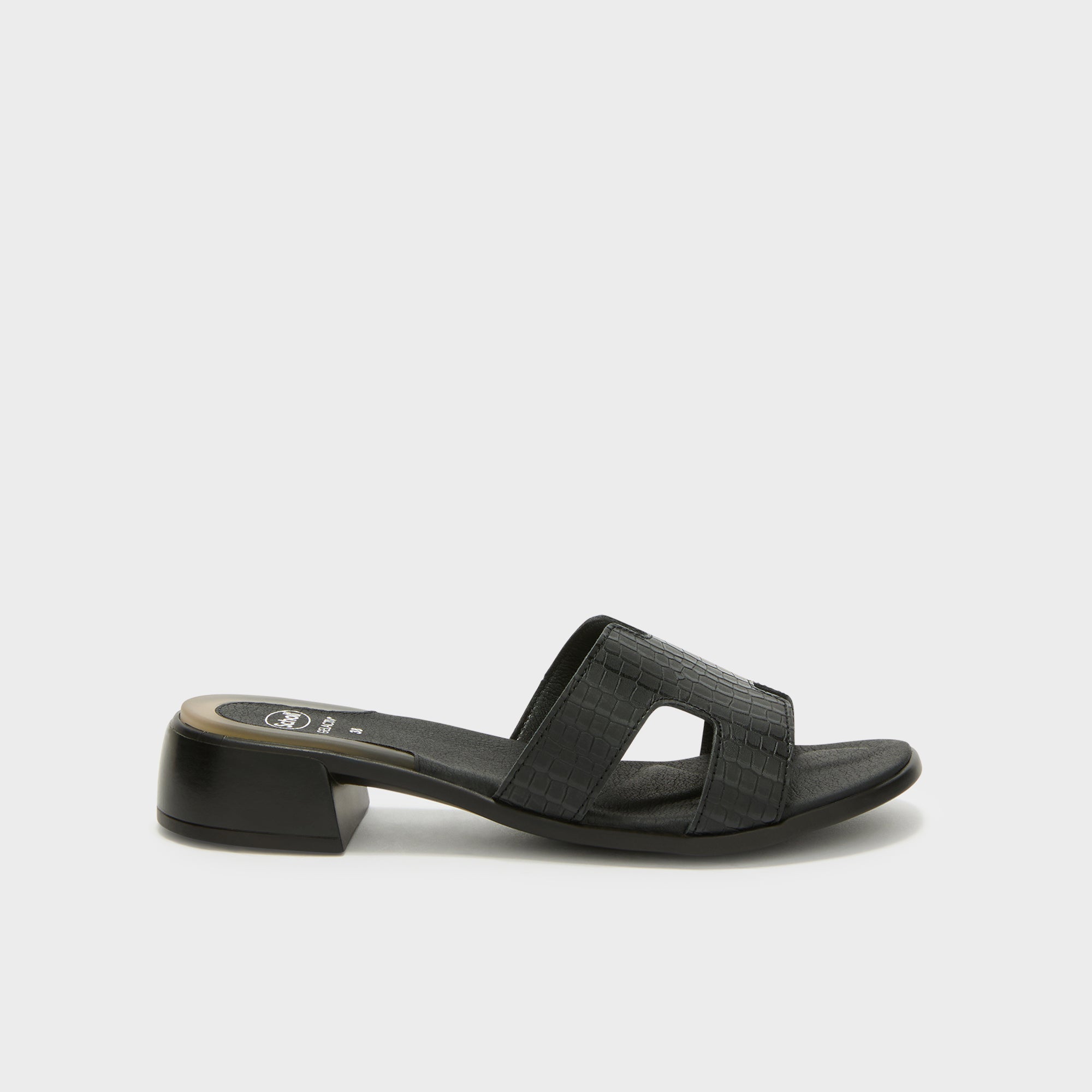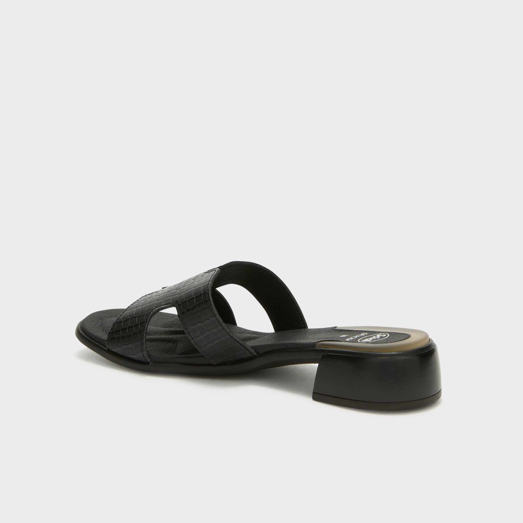 Pantelleria is a sandal with a 3 cm heel, featuring a crocodile-effect upper and equipped with gel technology for superior comfort. The gel cushion in the heel area helps absorb impact and makes walking more comfortable even during extended wear. The Technogel® insert from Gelactiv® under the heel helps absorb impacts while walking, offering a soft sensation with every step.